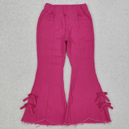 P0731 New Rts No Moq 8-9 Days By Air Arrived it Hot pink bow elastic waist kids girls flare jeans