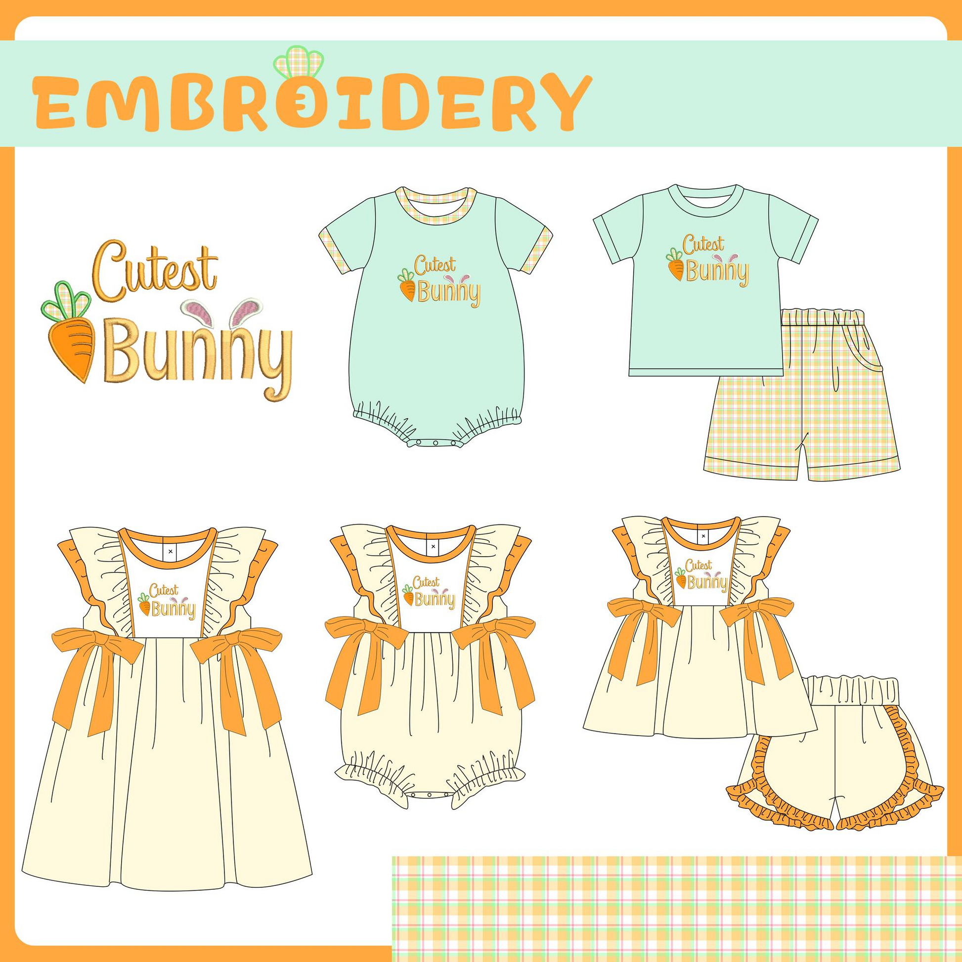 Pre-order for Easter Cute Bunny Bowknot Knee-Length Dress for Baby Girls and Boys - Short Sleeve Shorts - Romper Mixed Set