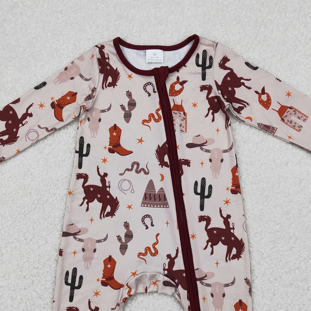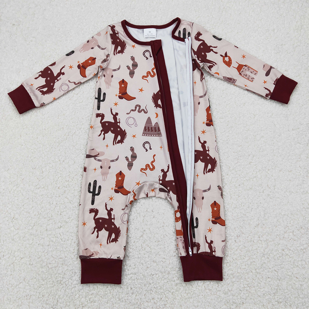 LR2188 RTS NO MOQ Baby Boys Winter Rompers Riding boots star brown zip-up long-sleeved jumpsuit