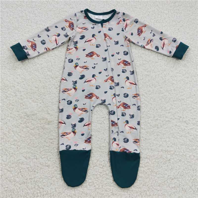 RTS LR0418 Duck lotus dark green zipper long-sleeved jumpsuit