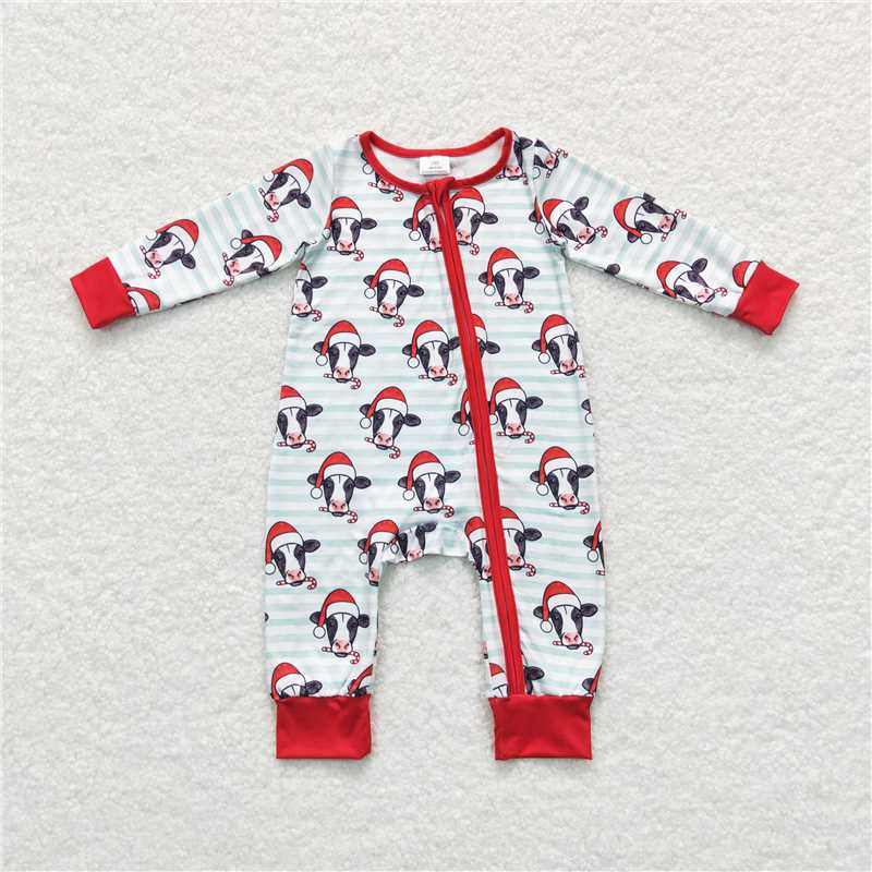RTS LR0700 Santa hat cow stripe zipper long sleeve jumpsuit