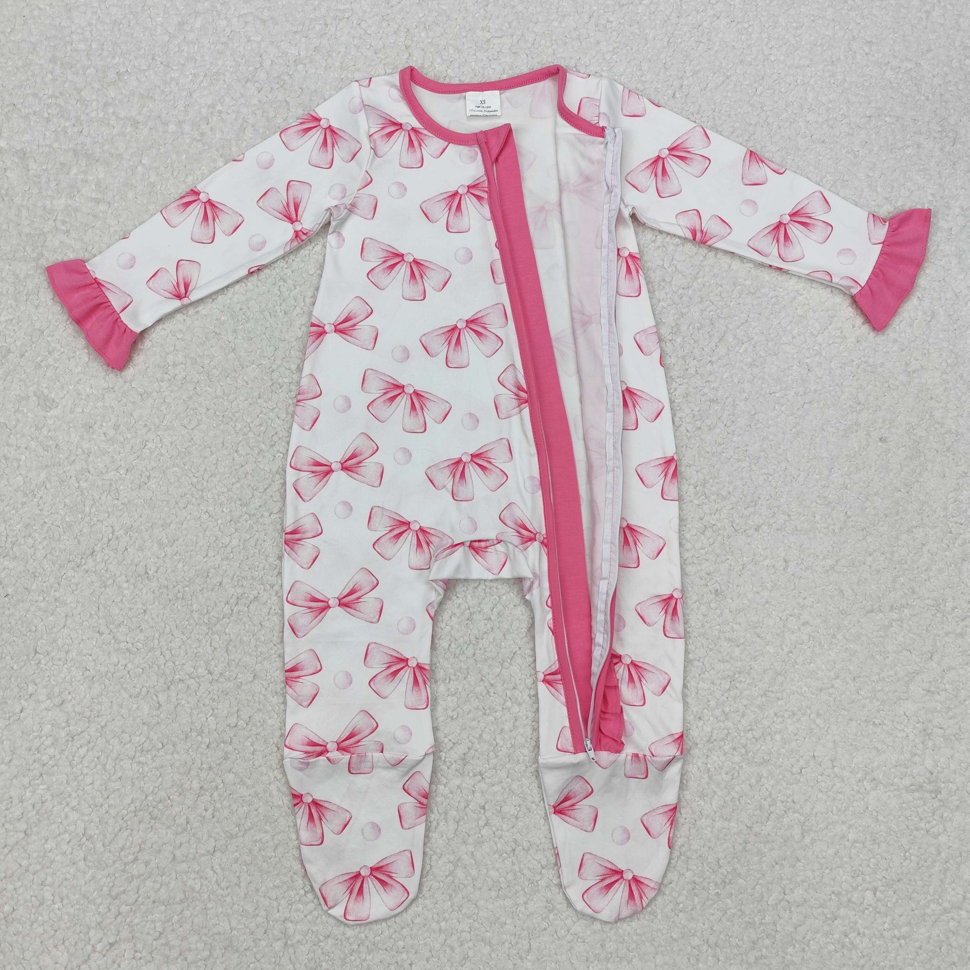 RTS NO MOQ ETA 5/7days arrived LR1770 Bow pattern pink lace white zipper long-sleeved jumpsuit