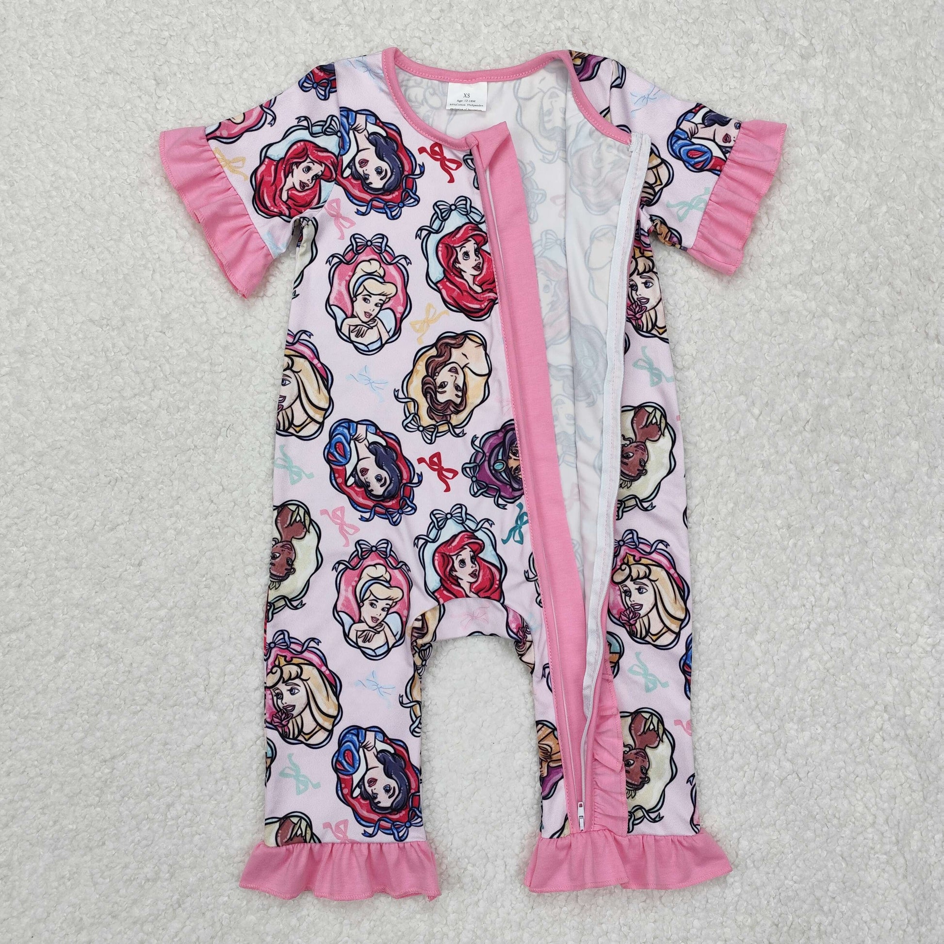 SR2309 Disney princess colorful bow pattern pink lace zipper short-sleeved jumpsuit