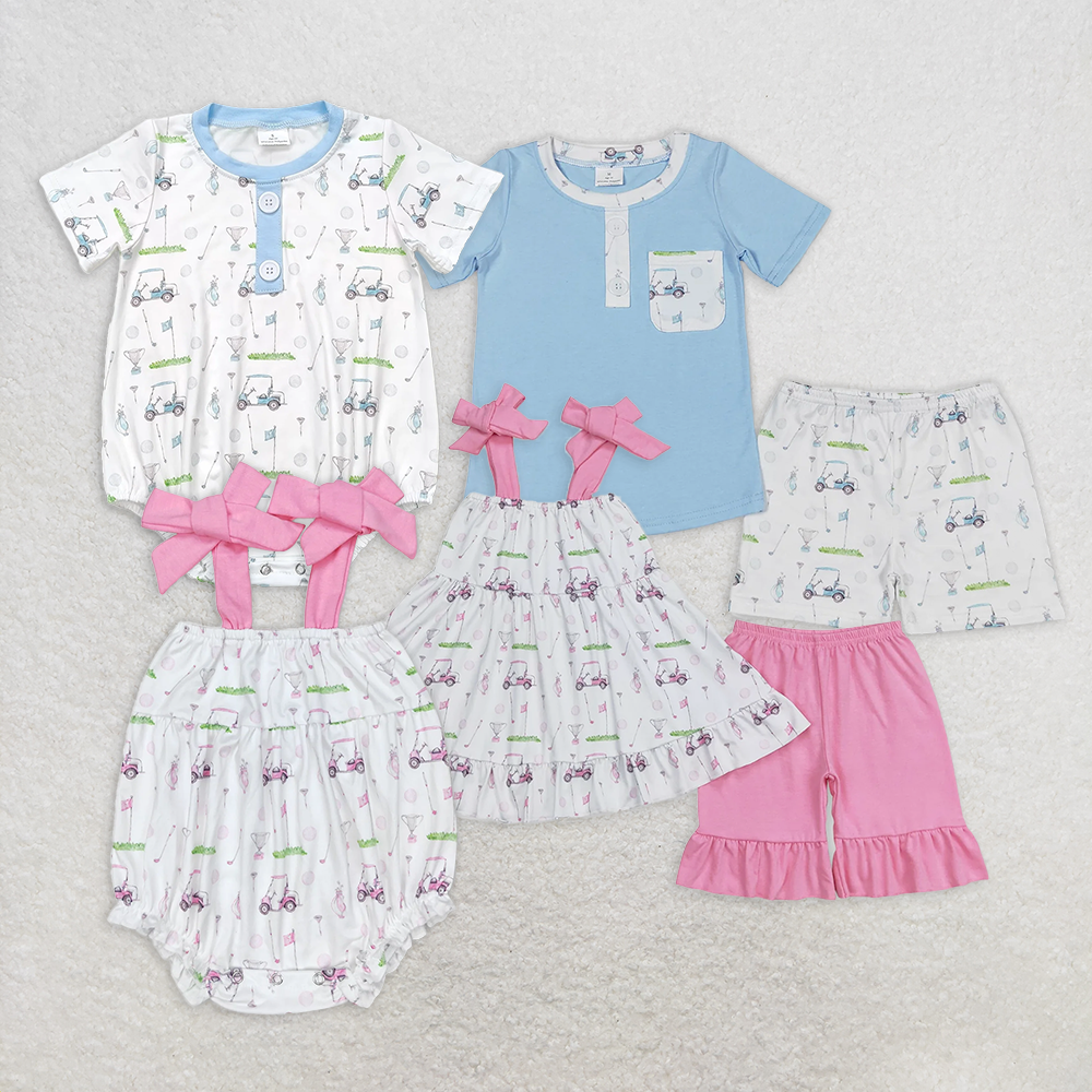 7.22 RTS NO MOQ Light blue pocket top golf shorts boys girls summer clothing