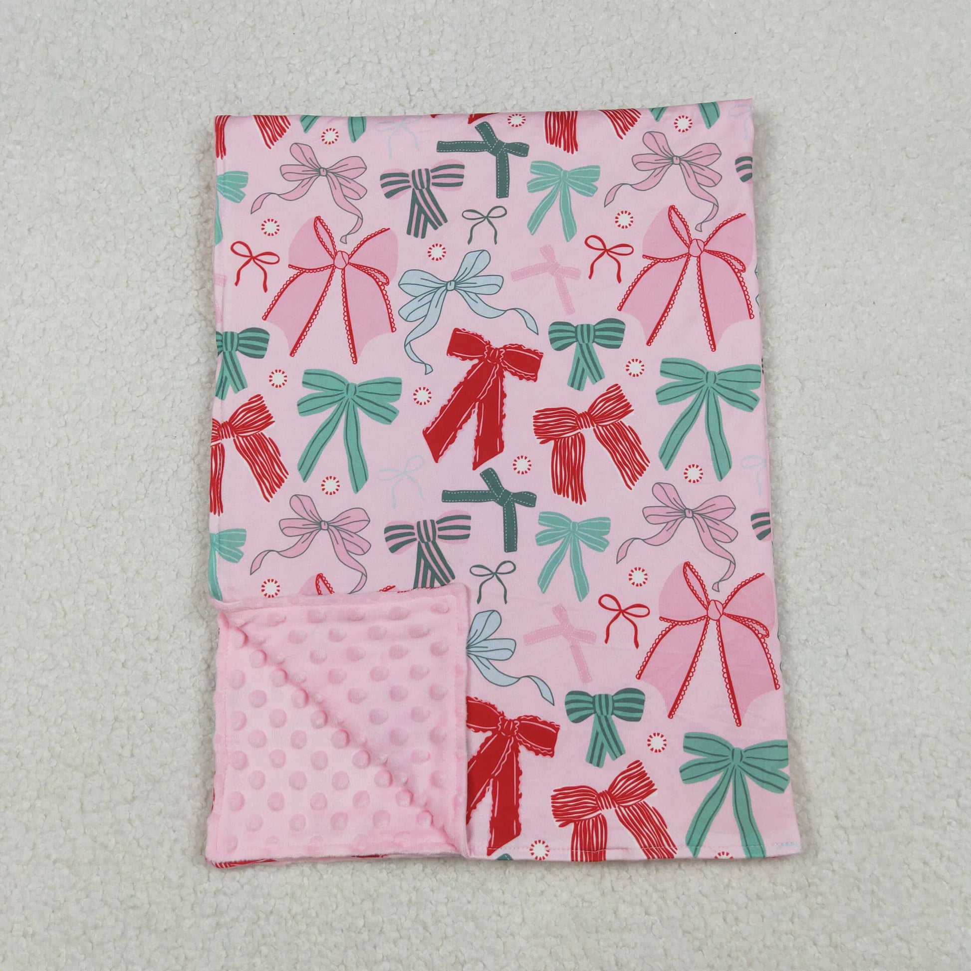 RTS NO MOQ (In stock)BL0218 Baby Blankets Pink Green Bows Plaid Christmas Blankets