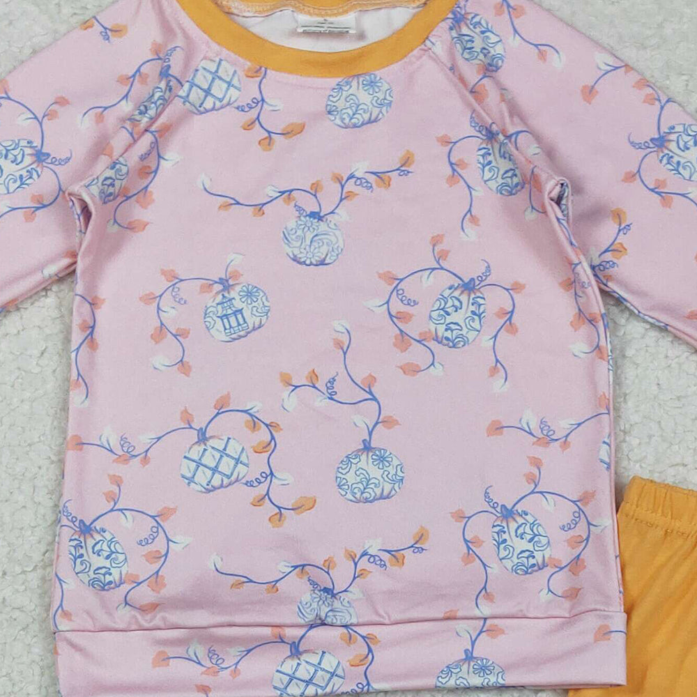 RTS NO MOQ (In stock)BLP0835 Baby Boys Winter Outfits Baby Boys Pumpkins Leaves Plaid Top Legging Fall Pant Sets