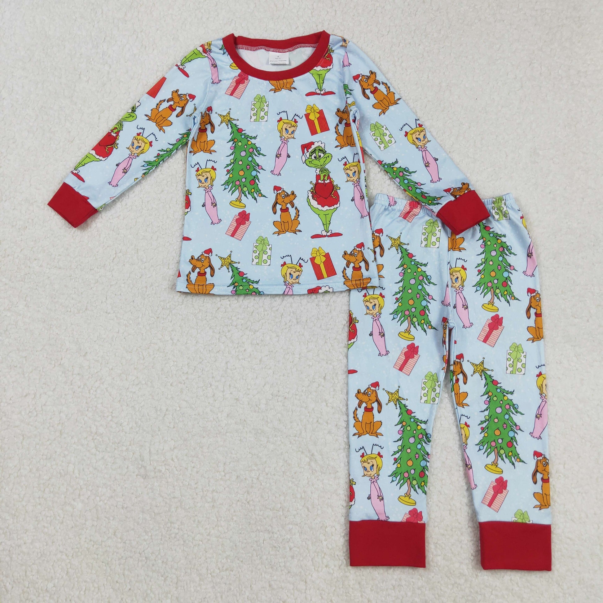 RTS NO MOQ (In stock)BLP1189 Baby Boys Winter Outfits Green Face Christmas Tree Long Sleeve Baby Kids Pajamas