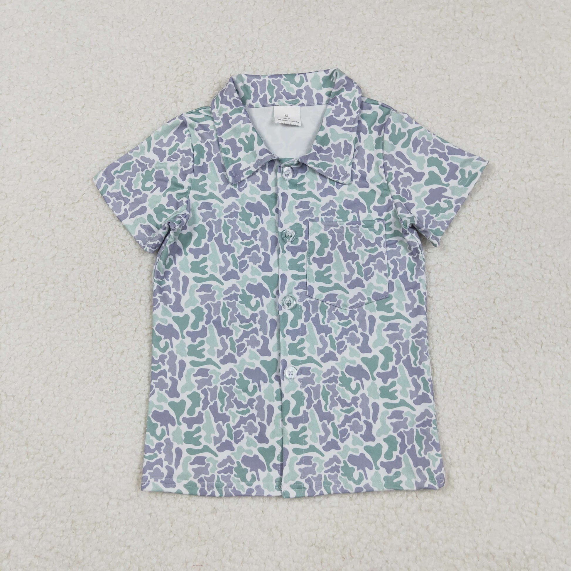 RTS NO MOQ (In stock)BT1295 Baby Boys Summer Tops Light Green Camo Western Button Shirts Top