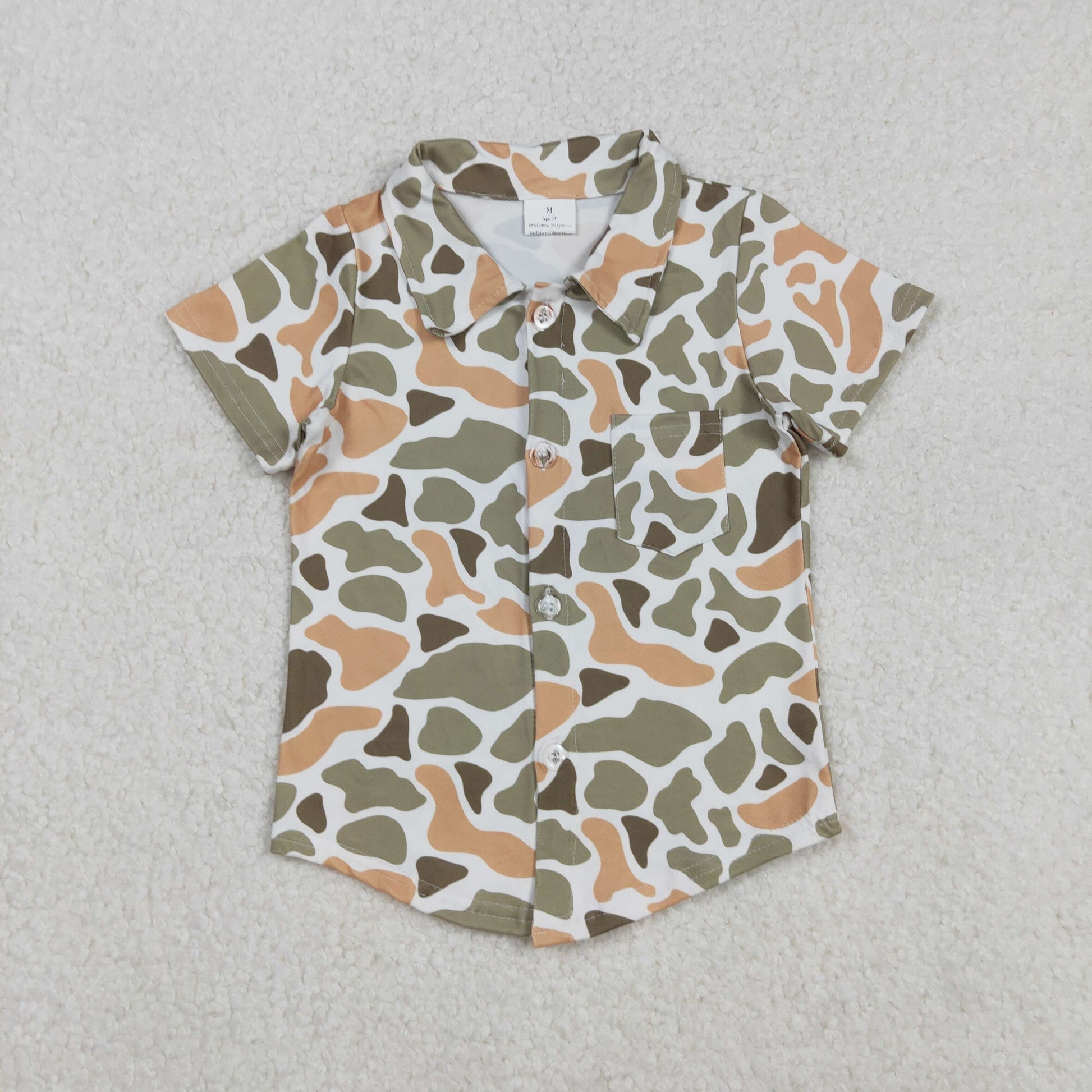 RTS NO MOQ (In stock)BT1312 Baby Boys Shorts Sleeve Tops Western Green Khaki Camouflage Button Pocket Shirt Top for Infants