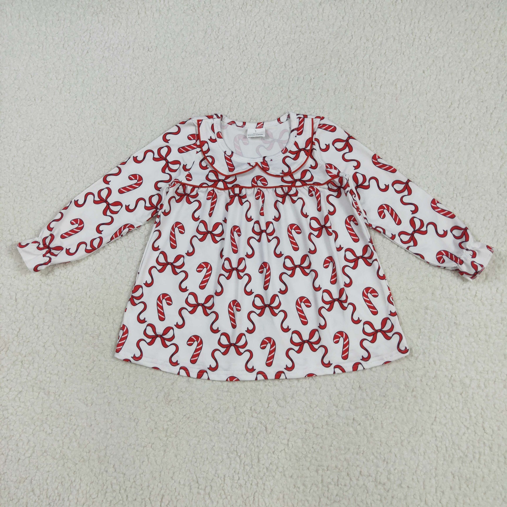 RTS NO MOQ (In stock)GLD1130 Baby Girls Winter Dress Baby Girls Christmas Red Bows Candy Cane Knee Length Dresses