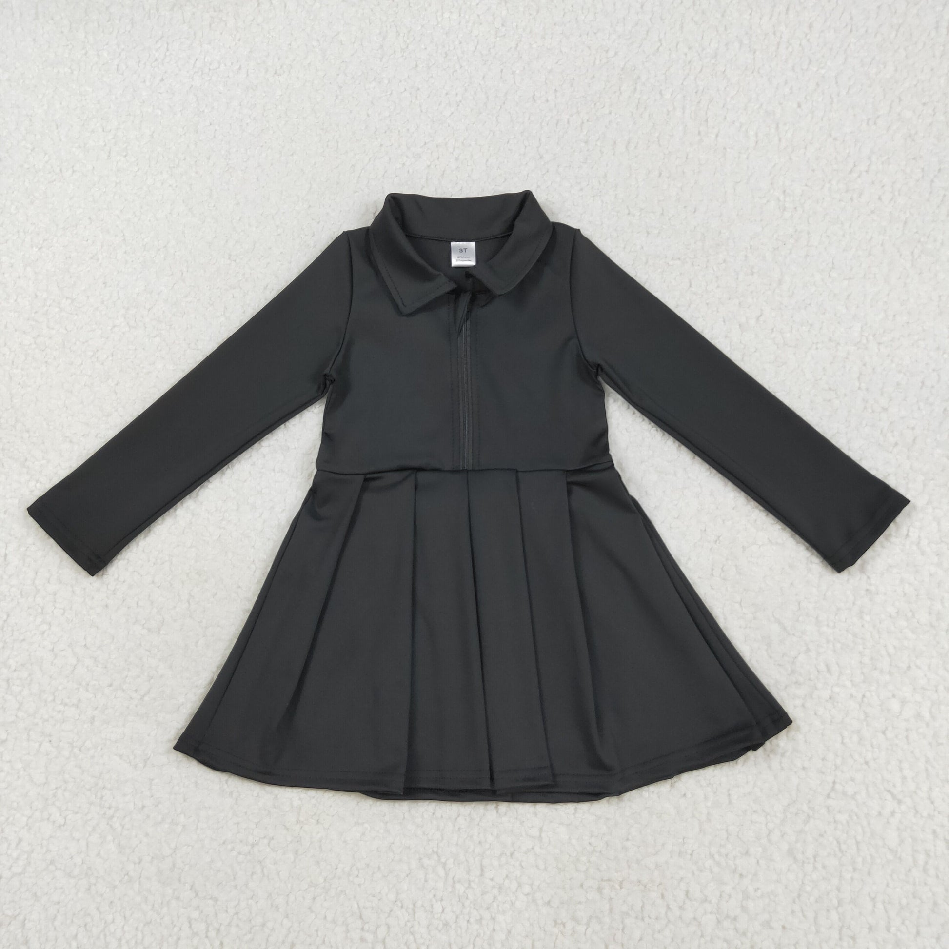 RTS NO MOQ (In stock)GLD1150 Baby Girls Yoga Dress Baby Girls Black Long Sleeves Zipper Yoga Active Wear Dresses