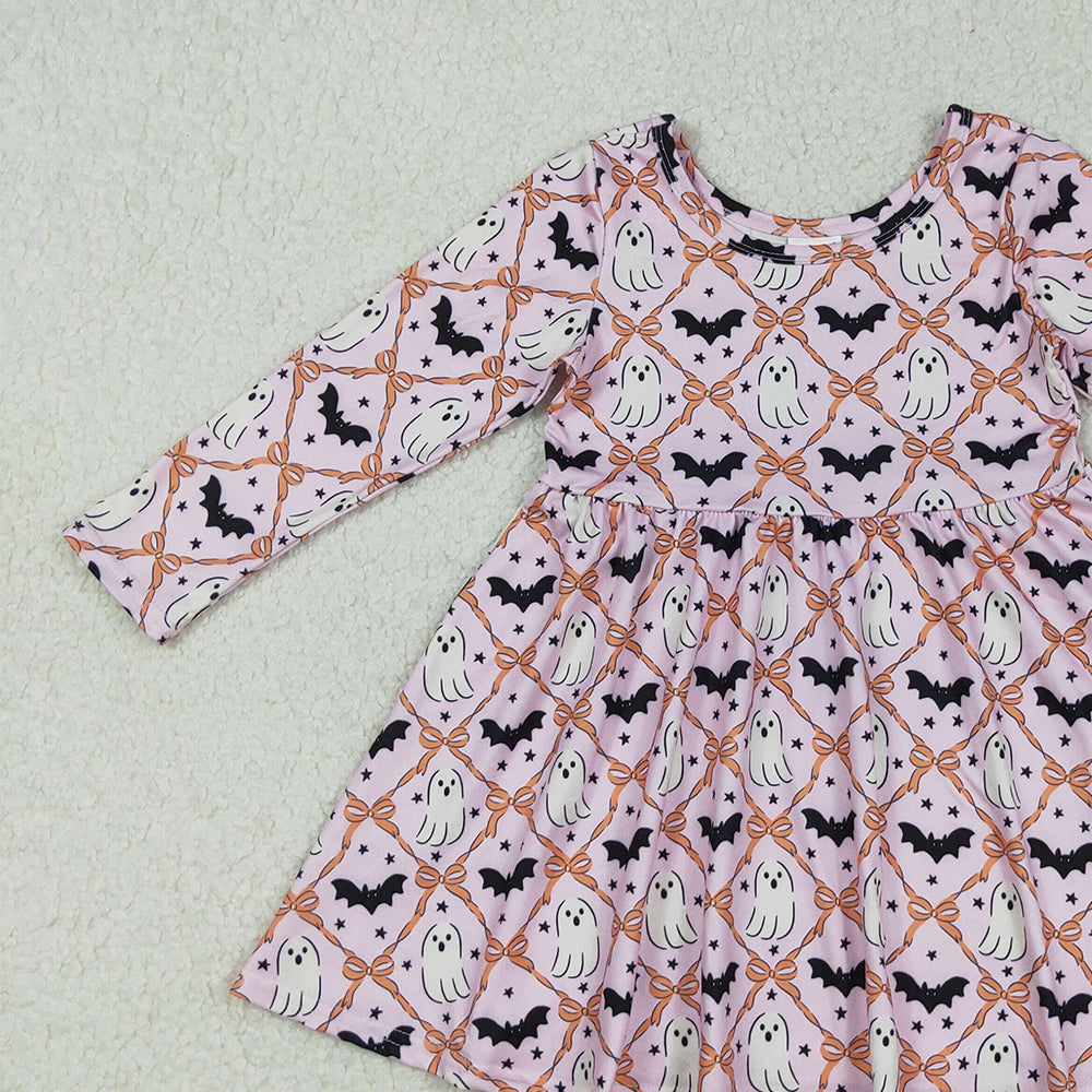 RTS NO MOQ (In stock)GLD1232 Baby Girls Winter Dress Long Sleeve Ghost Bow Halloween Costume Dress