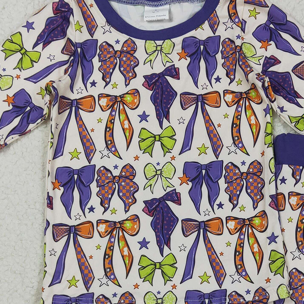 8.23 RTS NO MOQ (In stock)GLP2566 Baby Girls Winter Outfits Baby Girls Purple Green Bows Stars Plaid Top Pant Pajamas Set