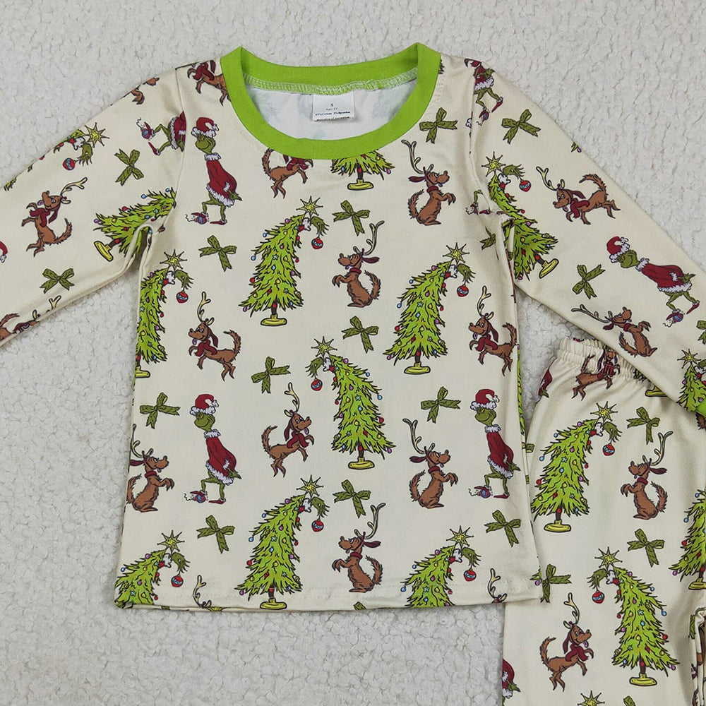 RTS NO MOQ (In stock)GLP2627 Baby Girls Winter Outfits Baby Boys Long Sleeves Christmas Trees Dogs Top Pant Pajamas Set