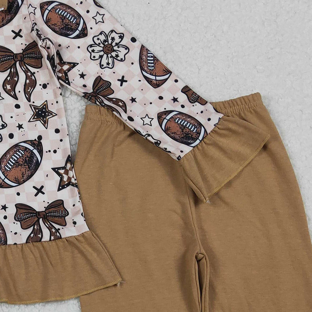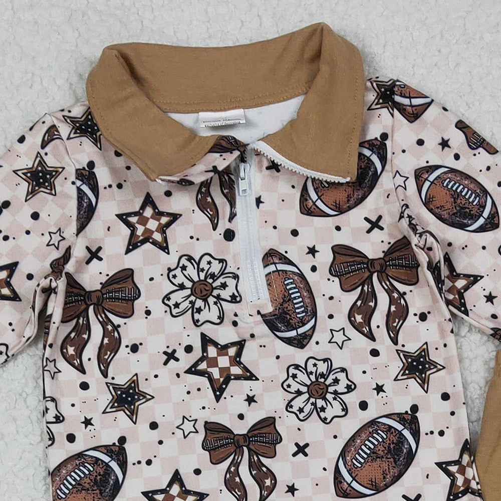RTS NO MOQ (In stock)GLP2690 Baby Girls Winter Outfits Footballs Bows Zipper Pullovers Legging Pants Team Sets