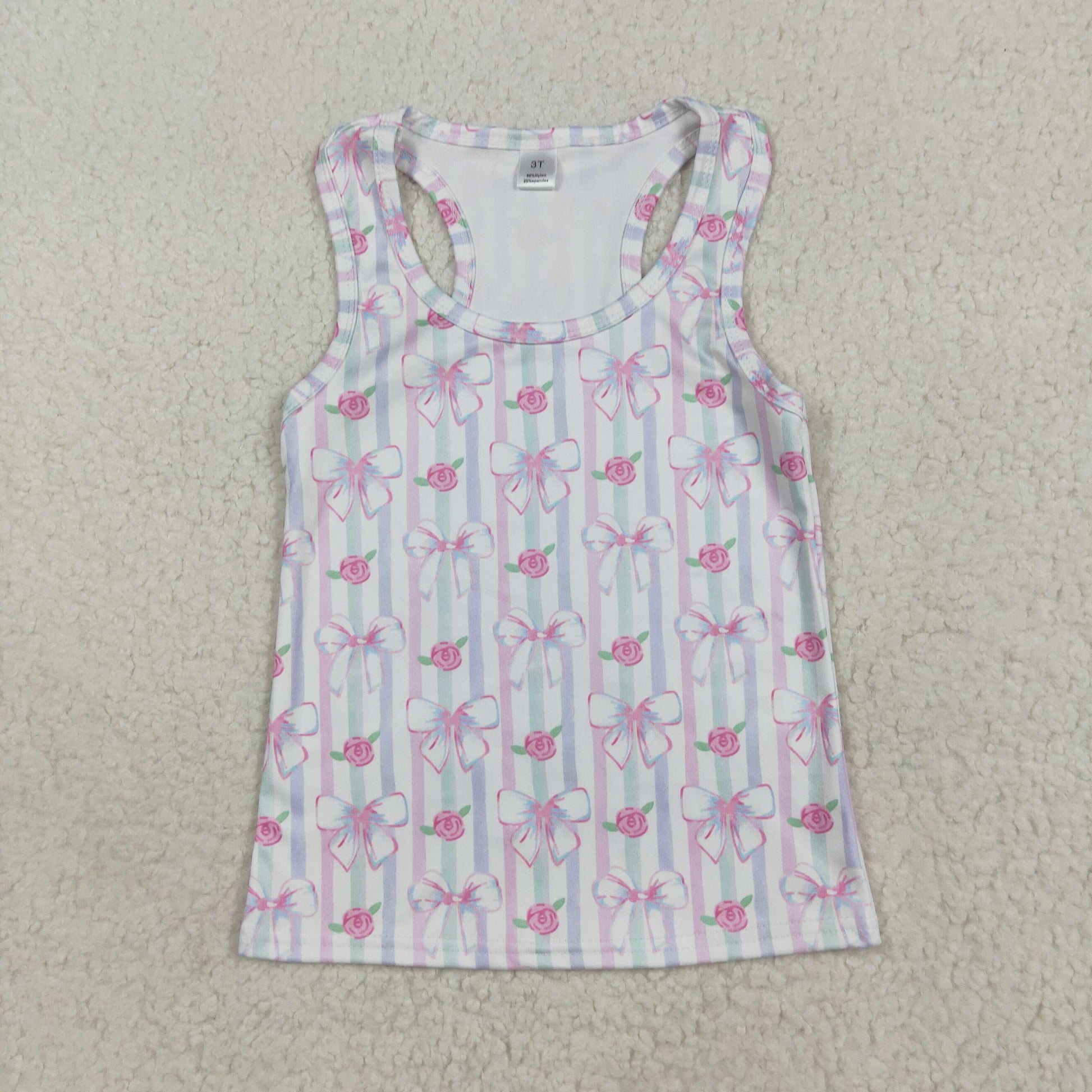 RTS NO MOQ (In stock)GT1014 Baby Girls Summer Yoga Tops Baby Girls Sleeveless Lavender Bows Flowers Stripe Yoga Shirts Tops