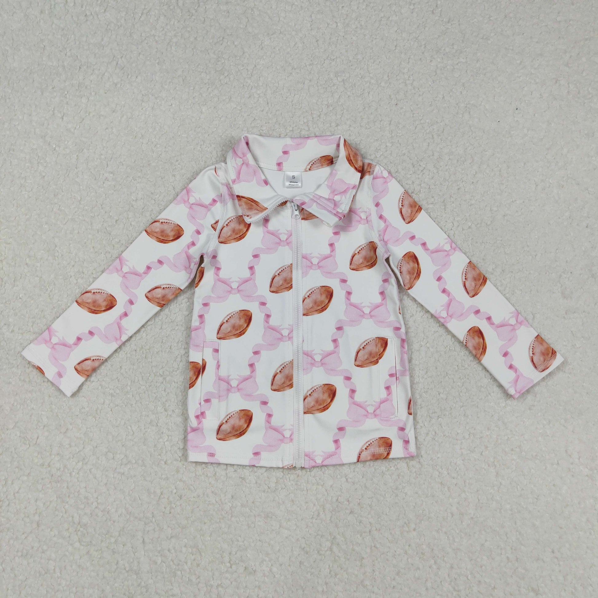 RTS NO MOQ (In stock)GT1088 Baby Girls Yoga Tops Long Sleeves Pink Bow Football Zipper Yoga Top