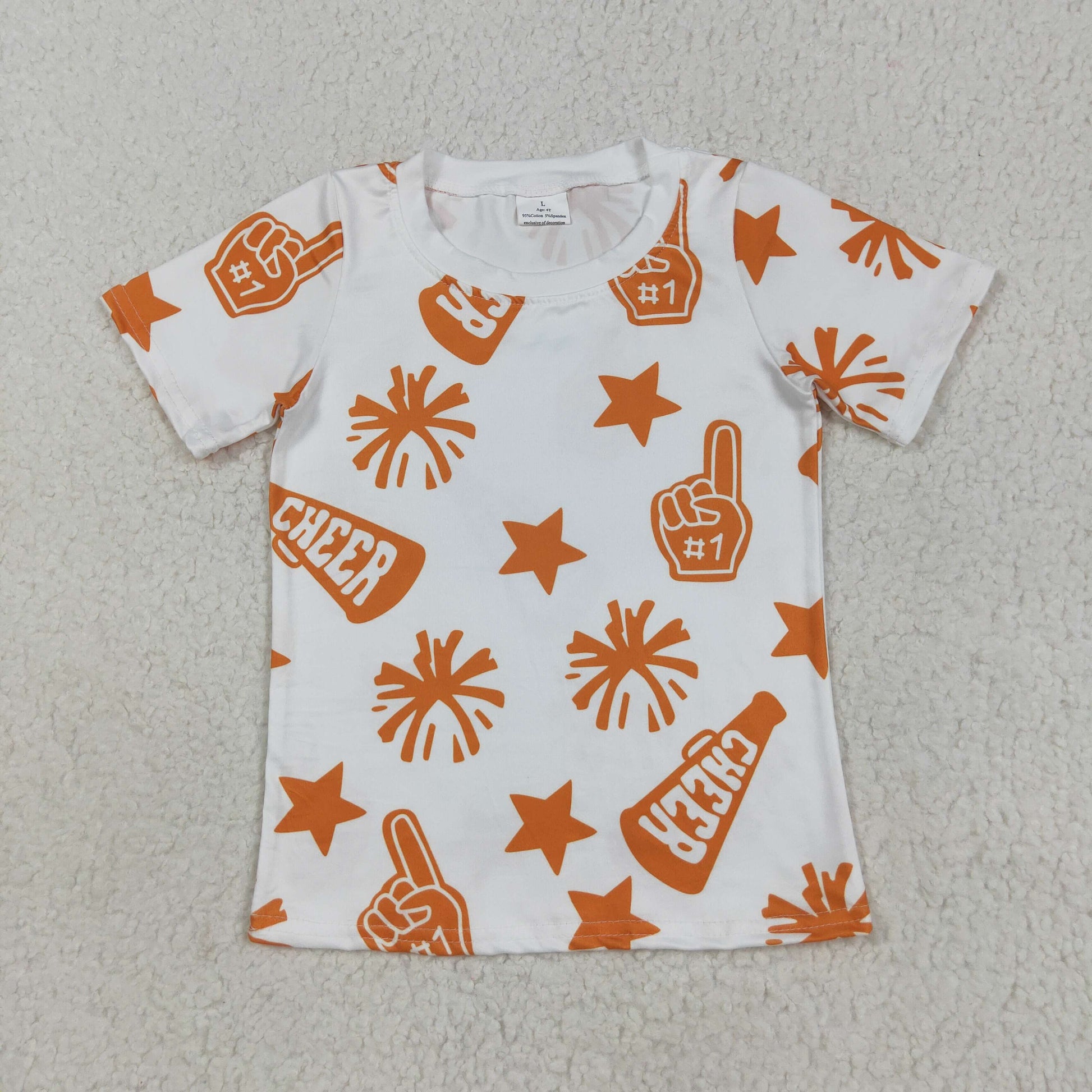 RTS NO MOQ (In stock)GT1090 Baby Girls Summer Tops Baby Girls Short Sleeves Cheer Stars Team Tee Shirts Top