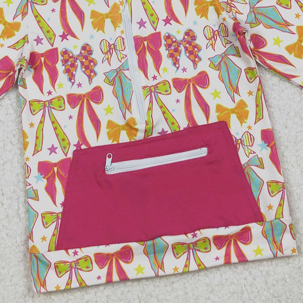 RTS NO MOQ (In stock)GT1121 Baby Girls Long Sleeve Tops Long Sleeves Colorful Bows Stars Pockets Zipper Hoodies Top