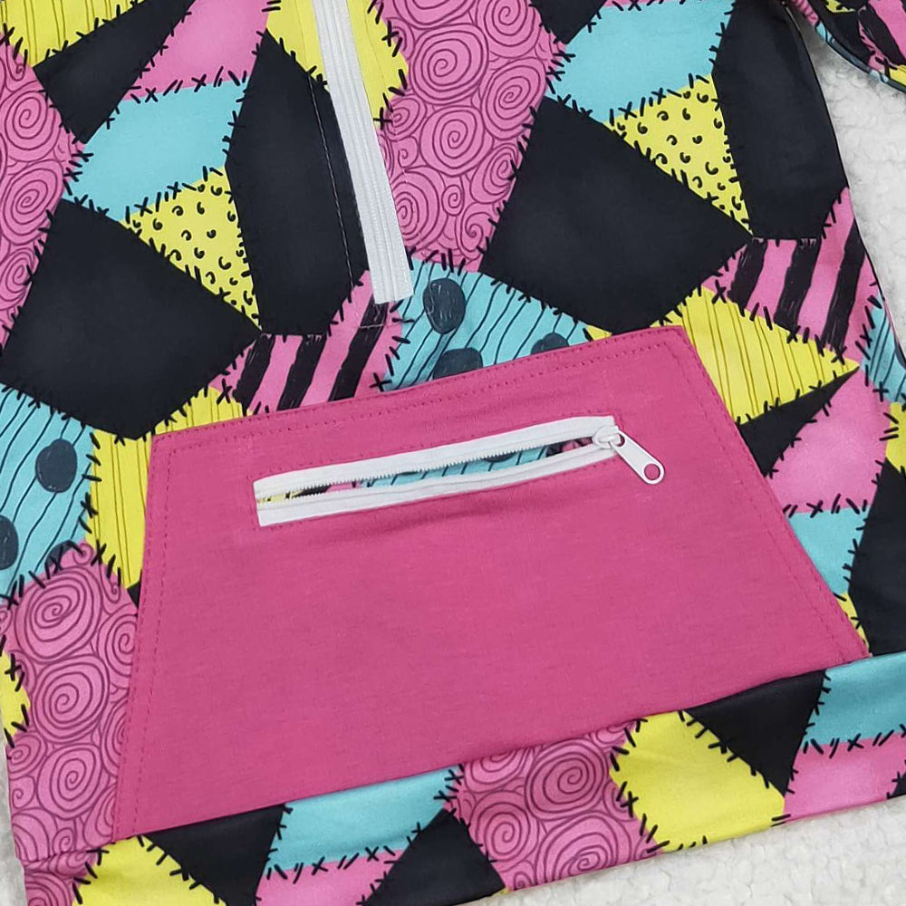 RTS NO MOQ (In stock)GT1137 Baby Girls Long Sleeve Tops Baby Girls Colorful Aztec Pocket Zipper Western Hoodies