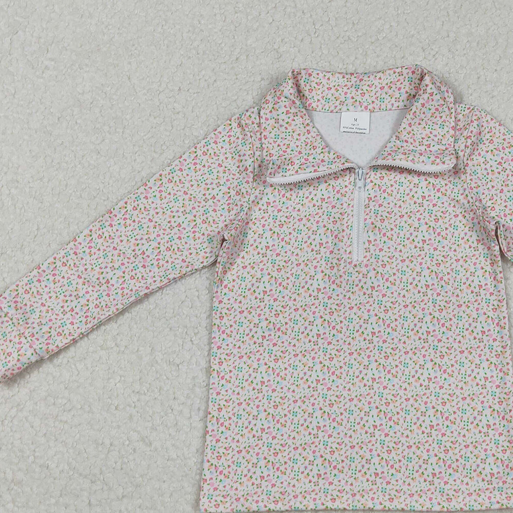 RTS NO MOQ (In stock)GT1145 Baby Girls Yoga Tops Zipper Pullover Long Sleeve Comfortable Soft Breathable Polyester Spring Autumn Casual Top
