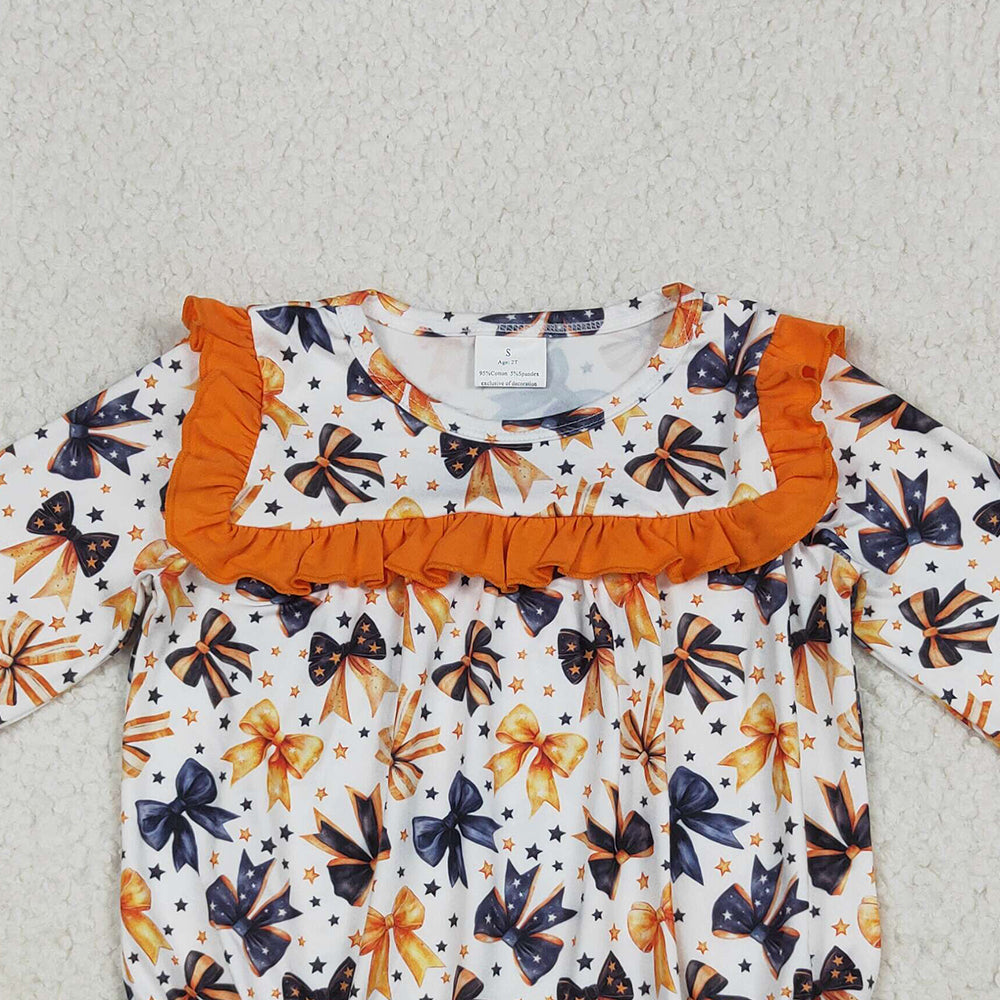 RTS NO MOQ (In stock)LR2207 Baby Girls Winter Rompers Baby Girls Halloween Colorful Bows Stars Ruffle Rompers