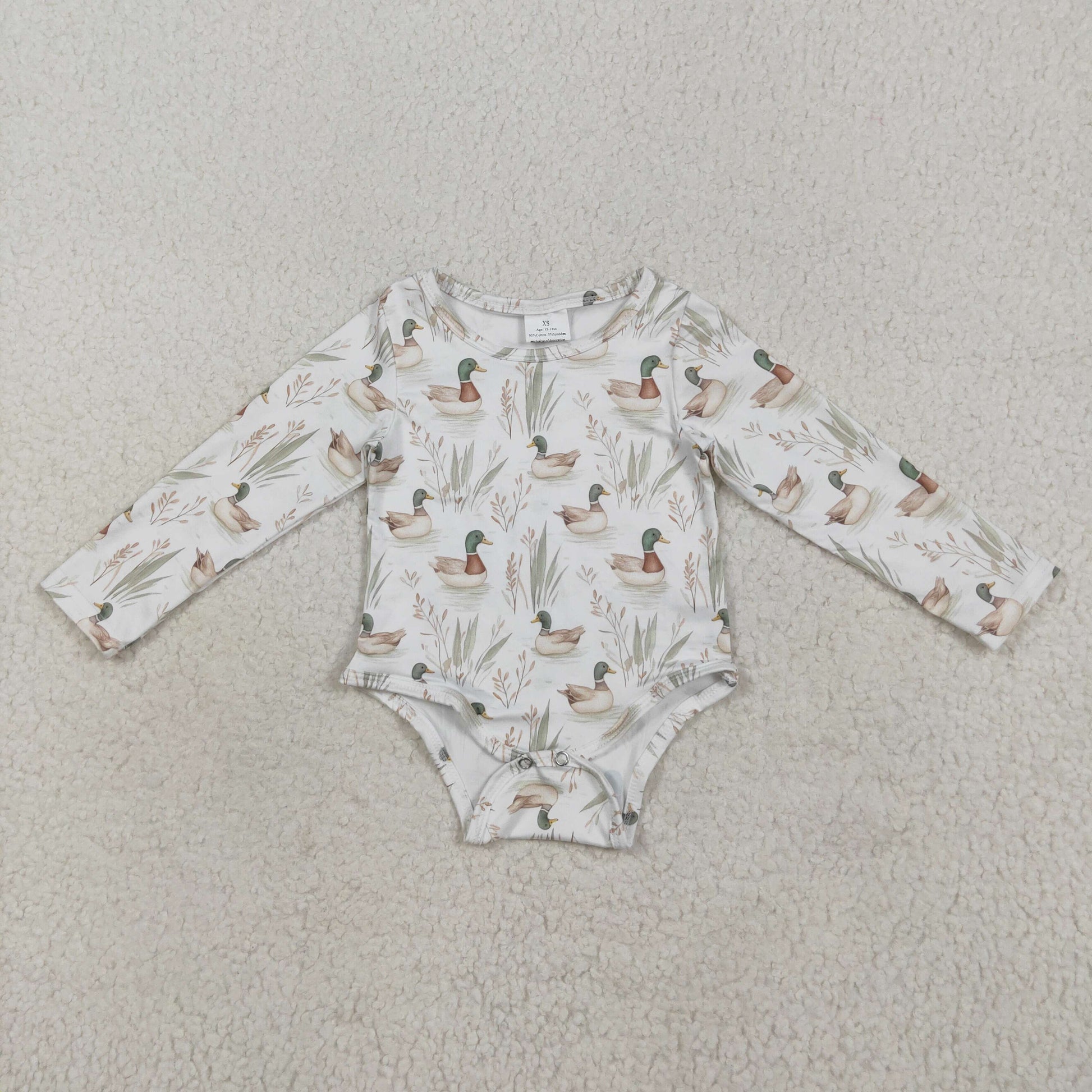 RTS NO MOQ (In stock)LR2338 Baby Girls Winter Rompers Baby Girls Long Sleeves Mallard Ducks Hunting Rompers