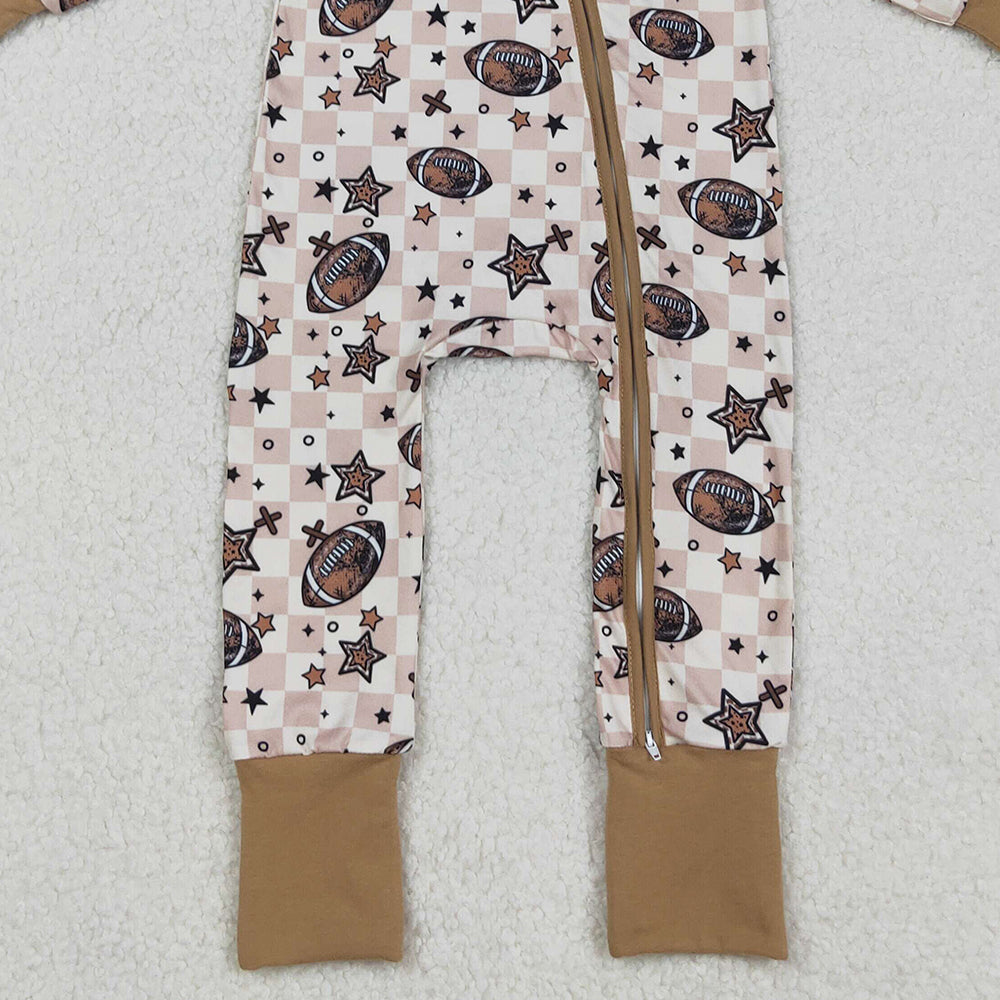 RTS NO MOQ (In stock)LR2548 Baby Boys Winter Rompers Long Sleeve Football Plaid Stars Zipper Romper Comfortable Soft Clothing for Infants