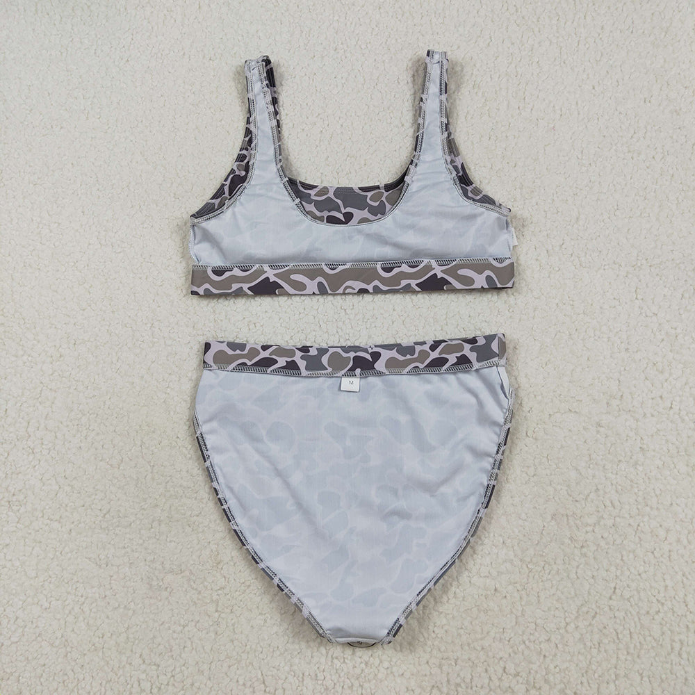 RTS NO MOQ (In stock) S0573+S0574 Adult Women's Swimsuit camo adult women summer swim top Bottomland camo adult women summer swim bottom