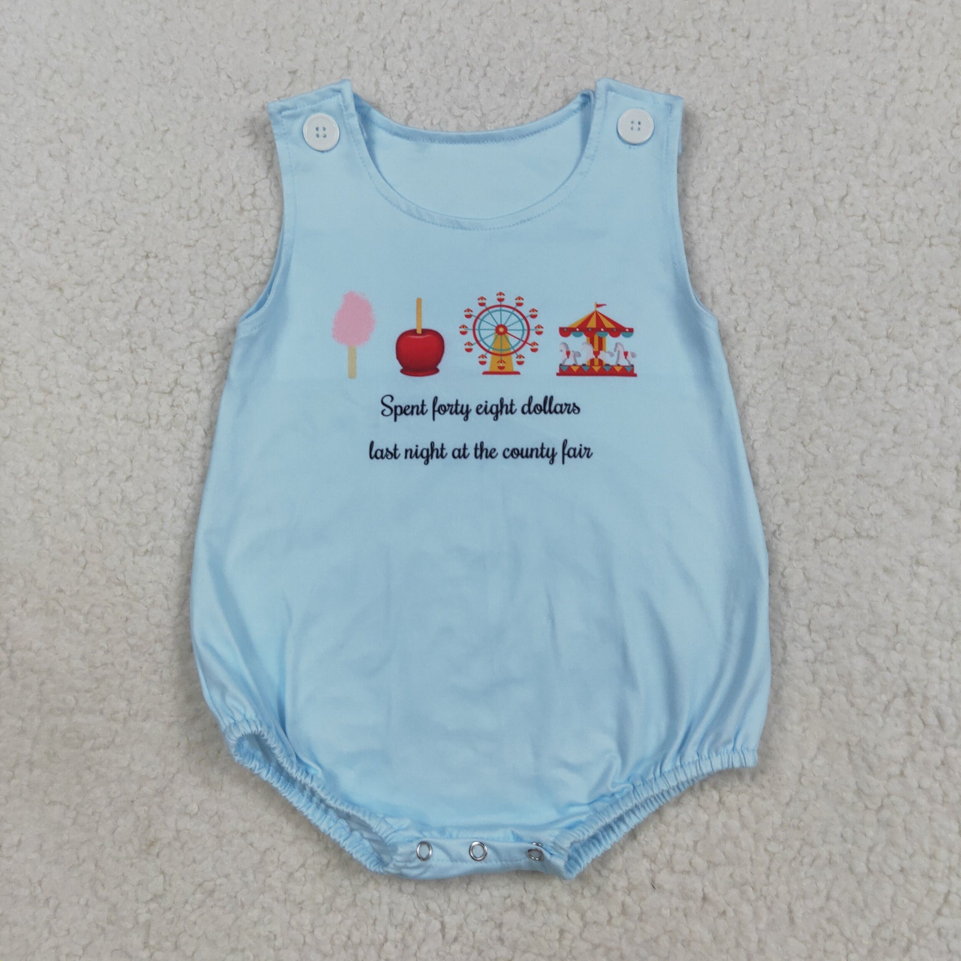 8.23 RTS NO MOQ (In stock)SR3056 Baby Boys Summer Rompers Baby Boys Blue Sleeveless Park Rompers