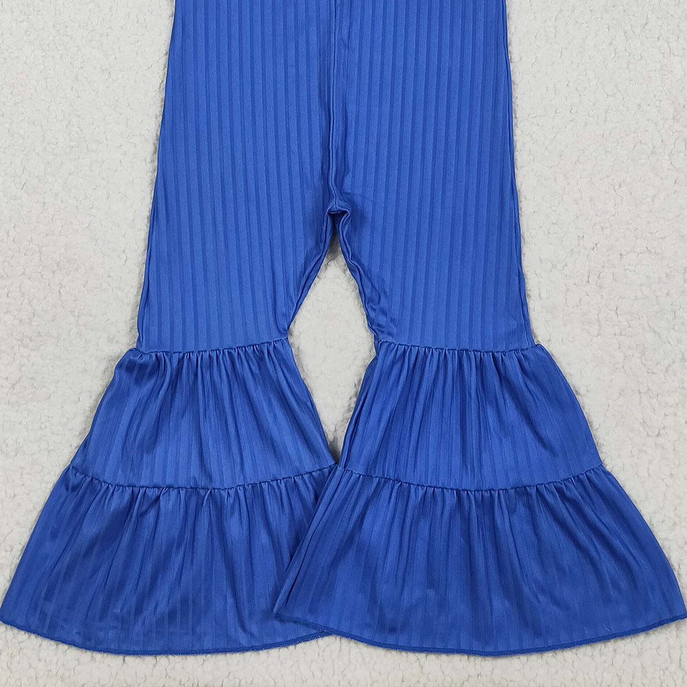 RTS NO MOQ (In stock)SR3158 Baby Girls Summer Jumpsuits Baby Girls Royal Blue Strap Bell Bottom Ribbed Jumpsuits