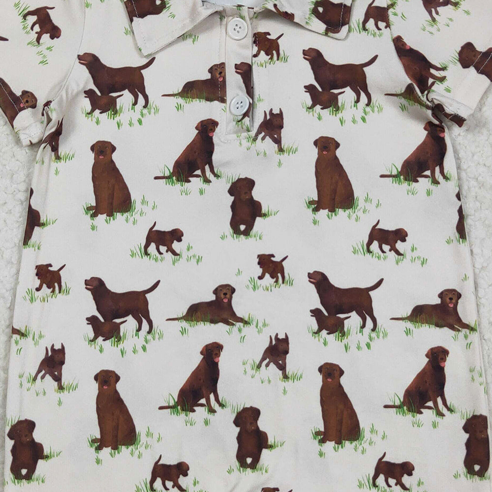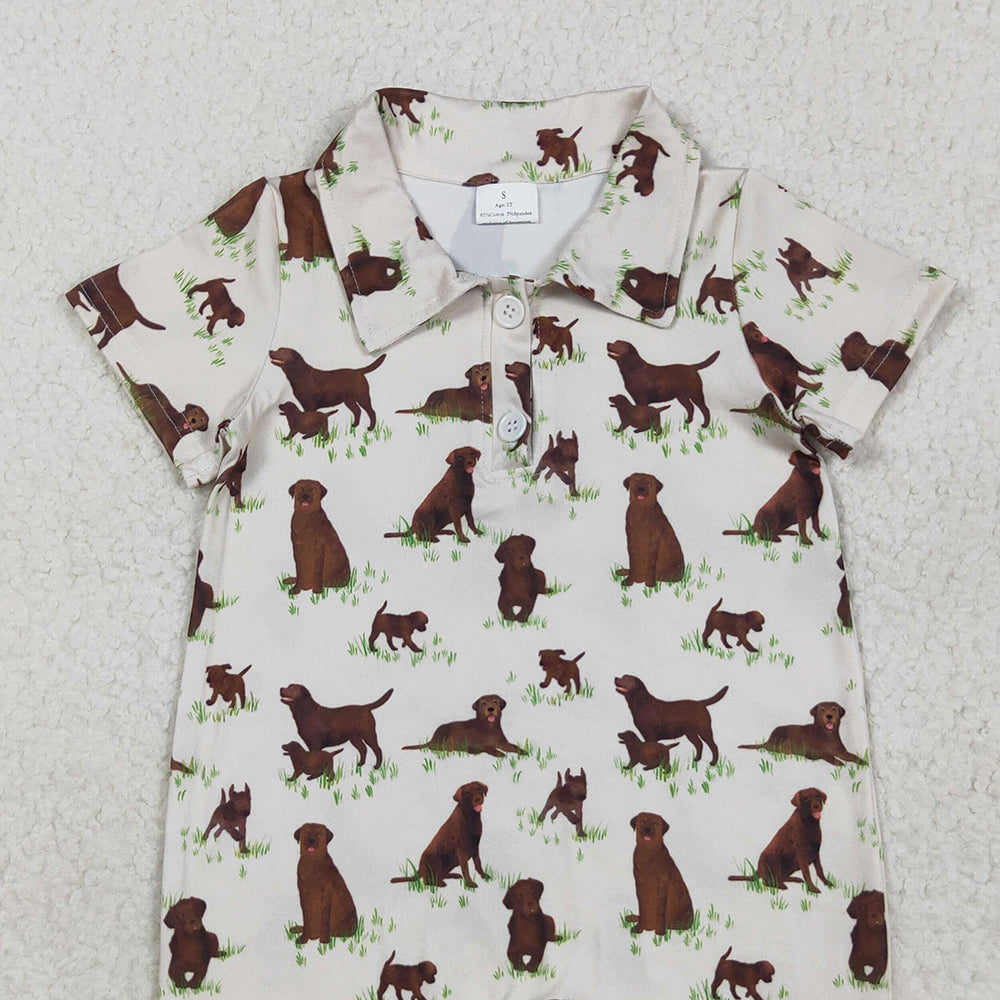 RTS NO MOQ (In stock)SR3174 Baby Boys Summer Rompers Baby Boys Short Sleeves Button Dogs Plaid Shorts Rompers