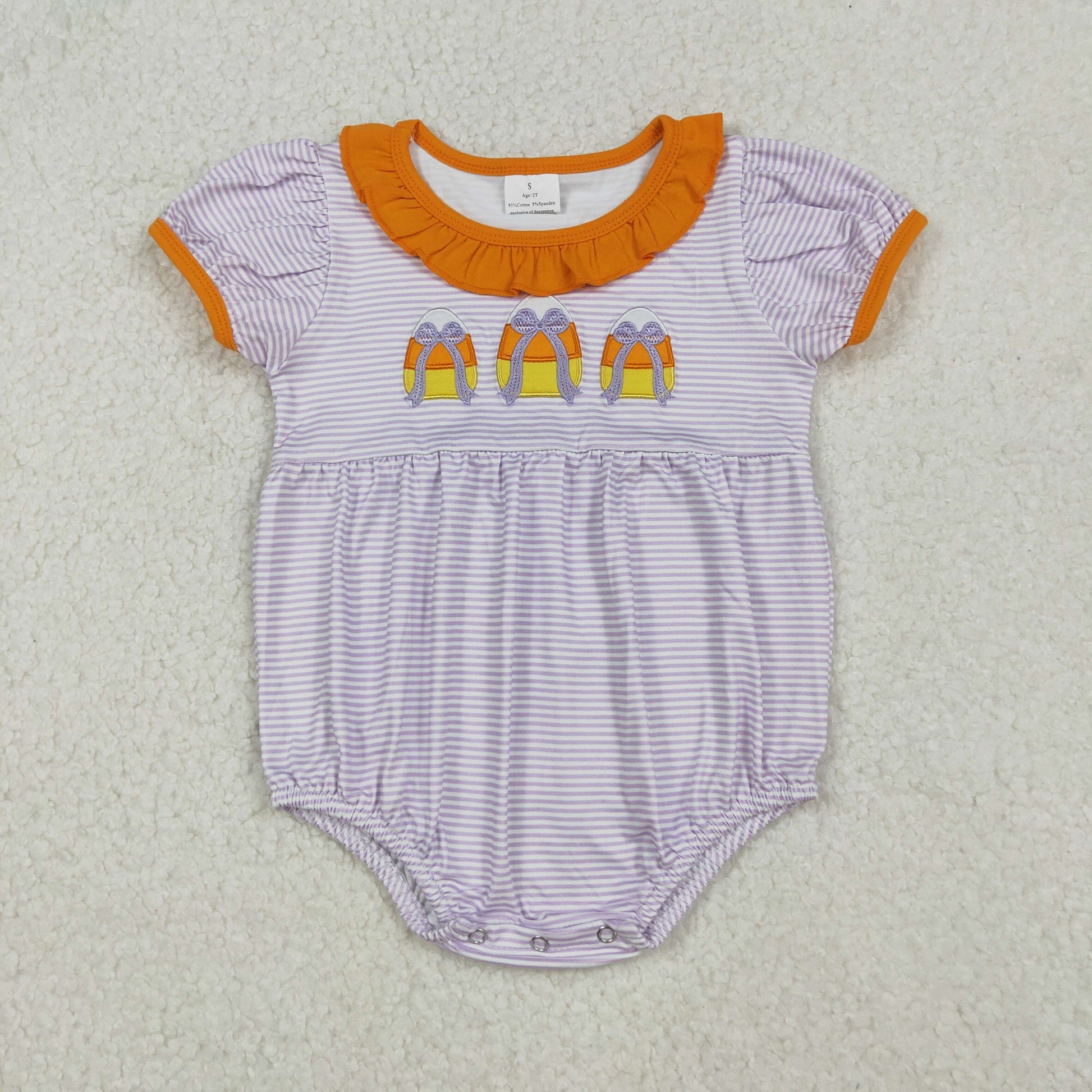 RTS NO MOQ (In stock)SR3202 Baby Girls Summer Rompers Lavender Stripe Bows Candy Halloween Rompers
