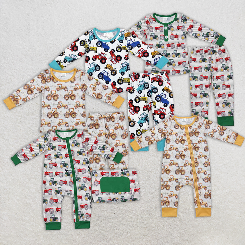 4.08 RTS NO MOQ Long sleeves tractor top pants kids boys pajamas rompers