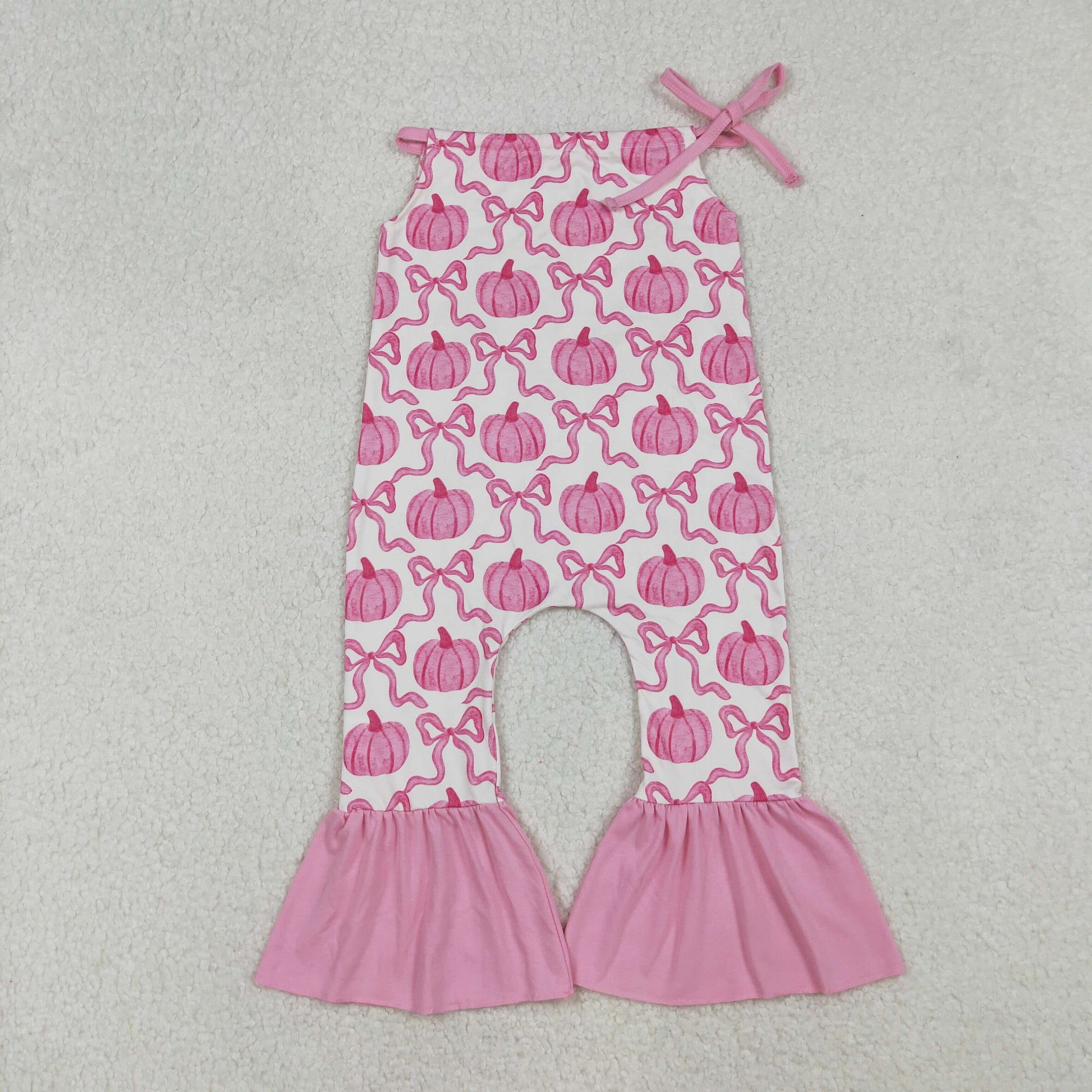 RTS Sibling Baby Pink Bow Pumpkin Halter Jumpsuit Rompers for Baby Girls Fall Season Fashionable And Cute Baby Outfit