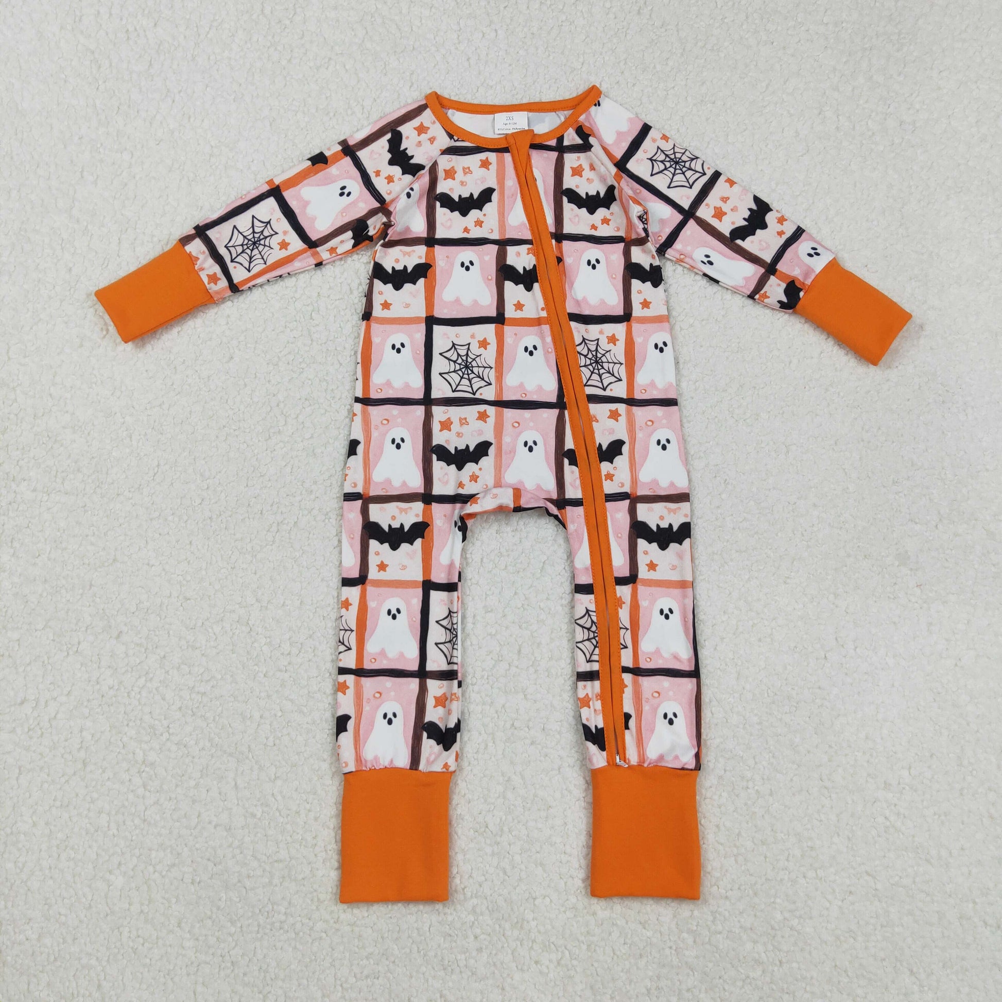 RTS Sibling Baby Girls Winter Outfits Pink Plaid Ghost Bat Halloween Pajamas Rompers for Kids Girls