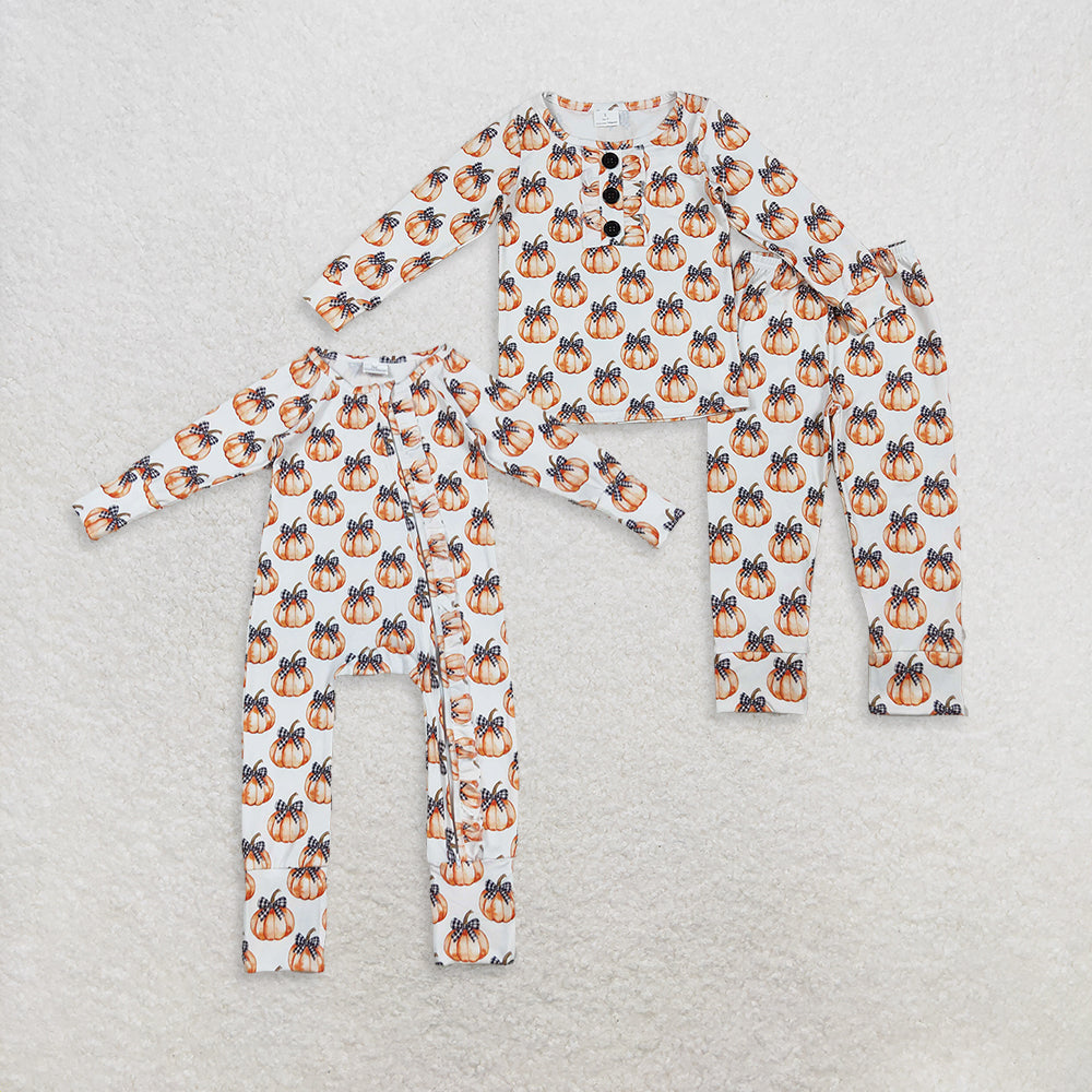 RTS Sibling Baby Girls Winter Outfits Plaid Bow Pumpkin Long Sleeve Pajamas Rompers Fall Season Comfortable Sleepwear