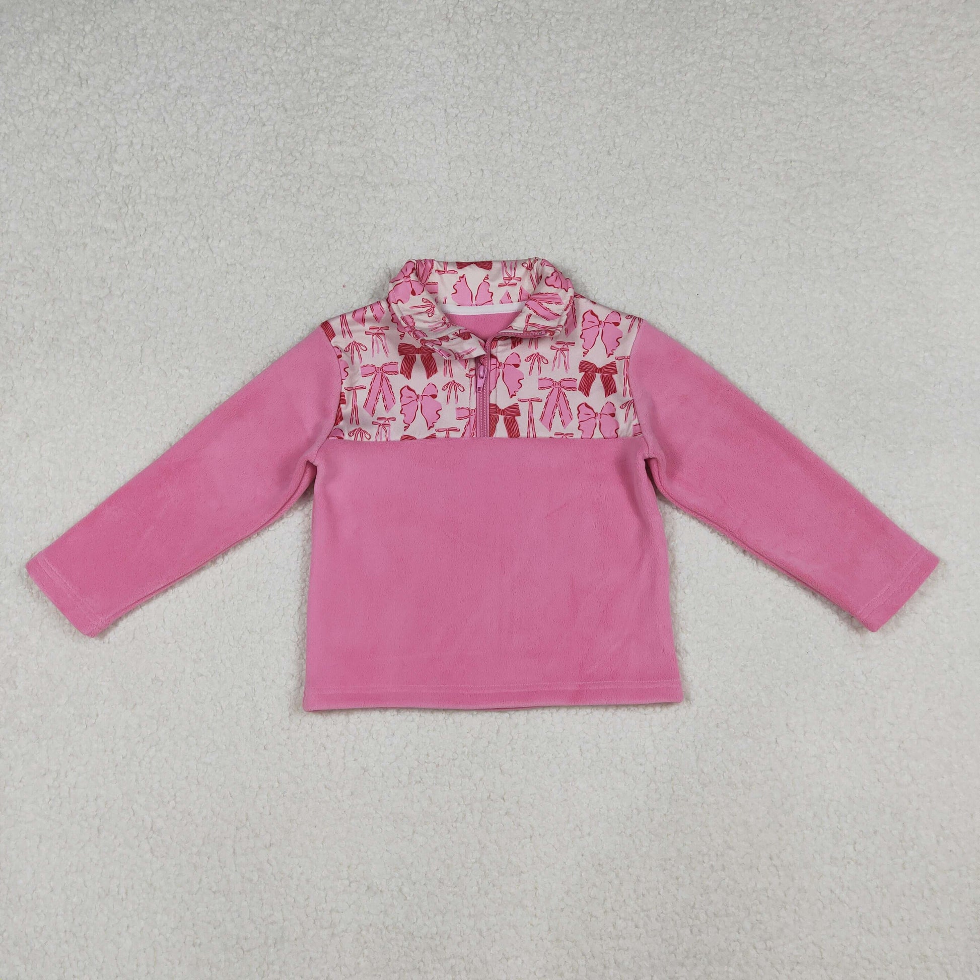 RTS Sibling Kids Girls Pink Bow Long Sleeves Winter Zipper Pullover Soft Cotton Top for Children's Winter Fashion