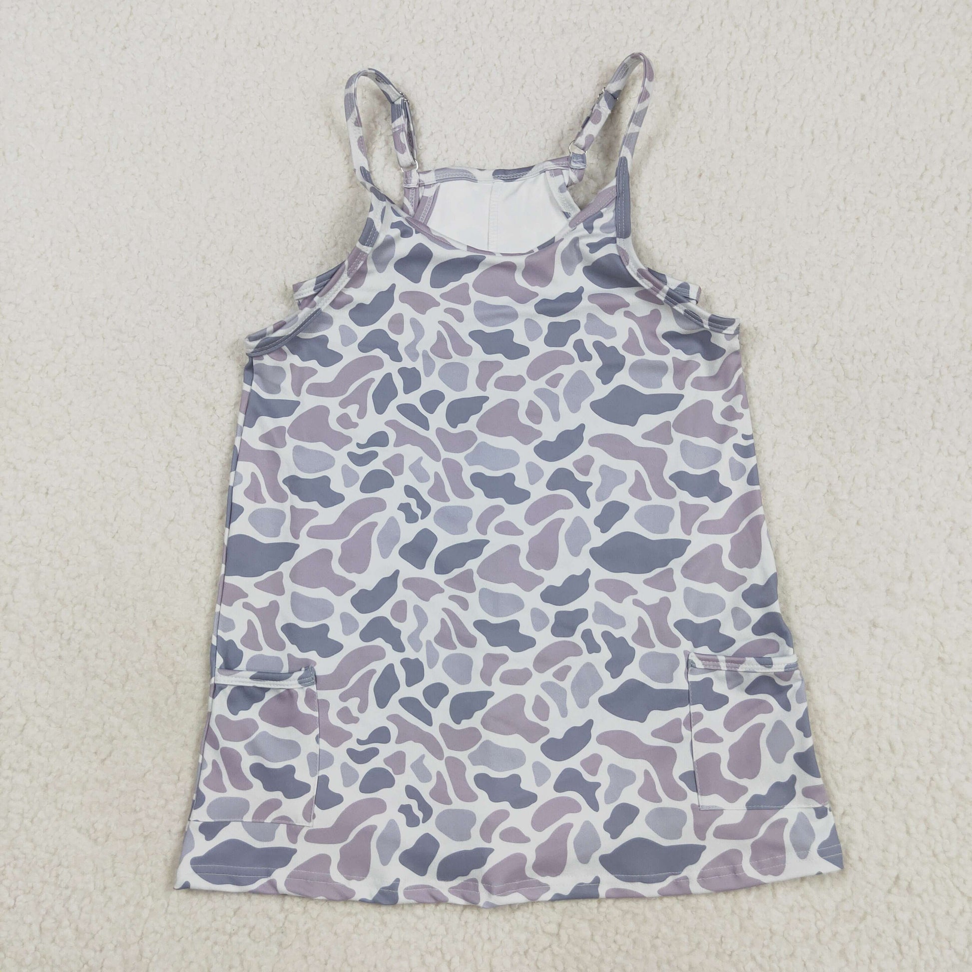 8.23 RTS Sibling Grey camo straps adult women and baby summer athletic dress