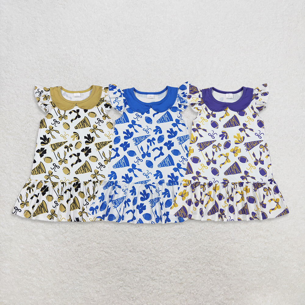 RTS Sibling Kids Girls Football Theme Bowtie Dress with Flutter Sleeves Team Go Football Apparel for Girls