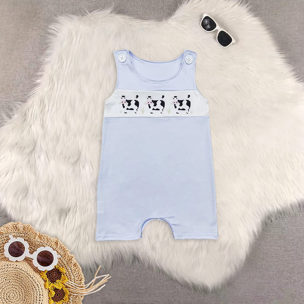 8.02 RTS Sibling Short sleeves cows top plaid shorts boys clothes rompers