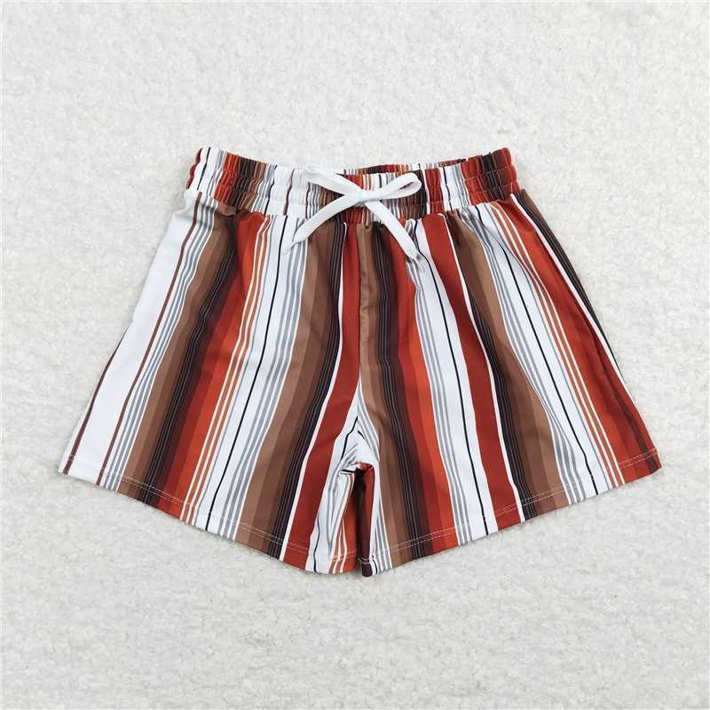 S0237 Orange, red, white and brown striped swimming trunks