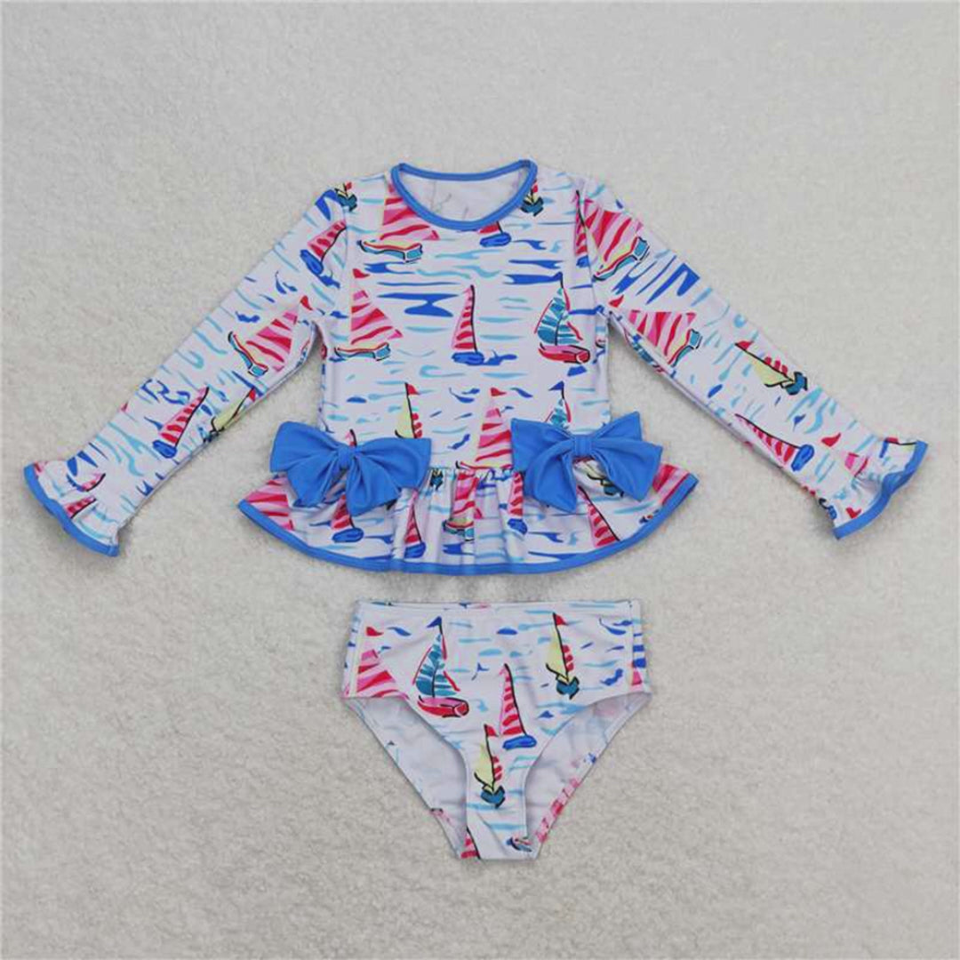 6.07 S0276 New Rts No Moq 8-9 Days By Air Arrived itBlue sailboat long sleeves one pc baby girls swimsuit