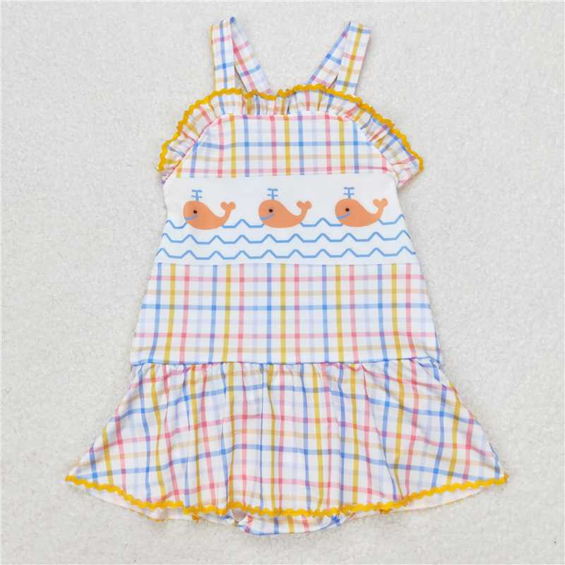 S0396 Baby Girls Orange Whales Ruffle One Piece Swimsuits
