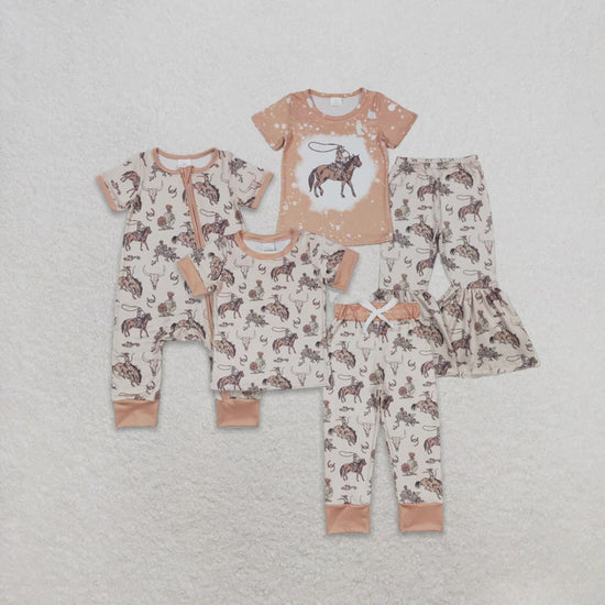 6.07 Girls Bleached Rodeo Top Bell Bottom Pants Outfit Casual Cotton Clothes Set for Kids