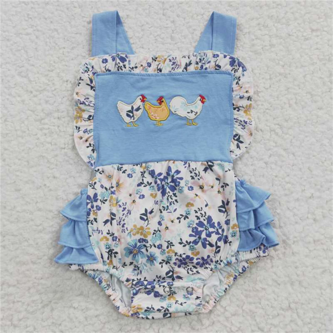 USA Shop (in stock)SR0285Baby Girls Chicken Floral Print Romper Bummies Comfortable Cotton Outfit for Infants Summer Clothing