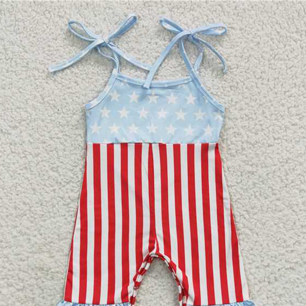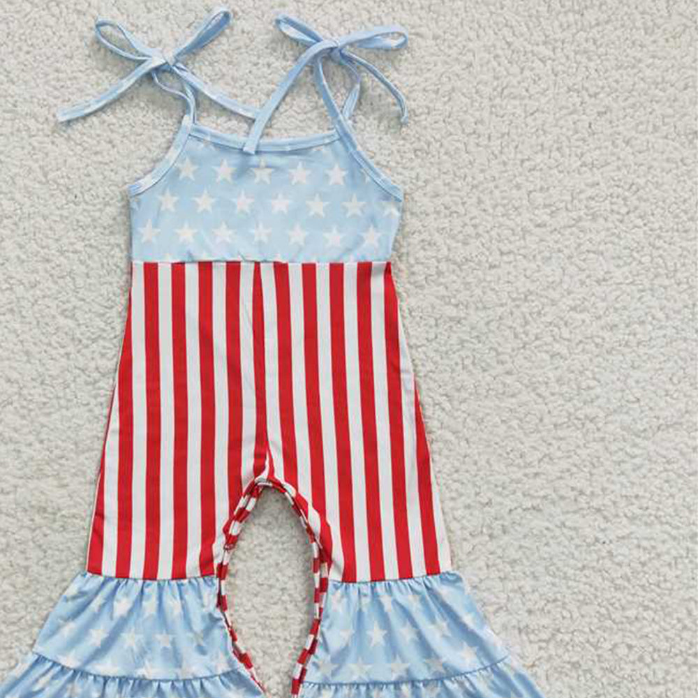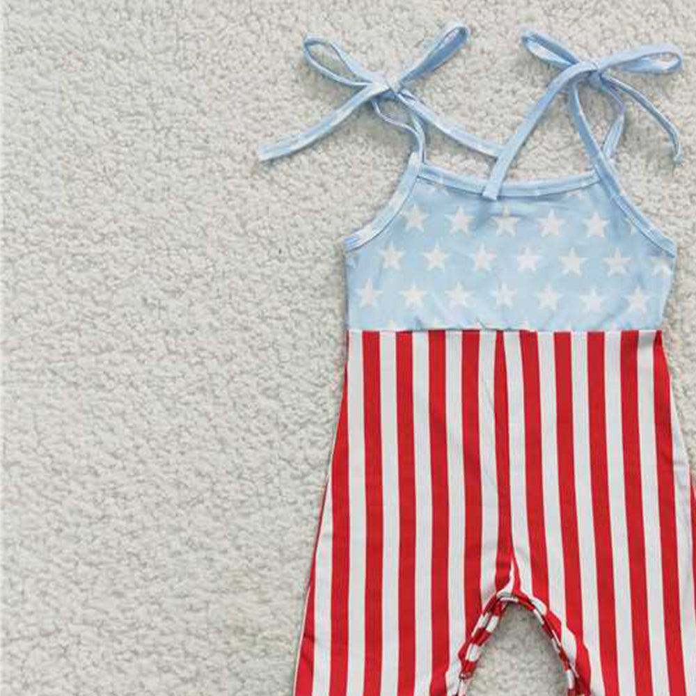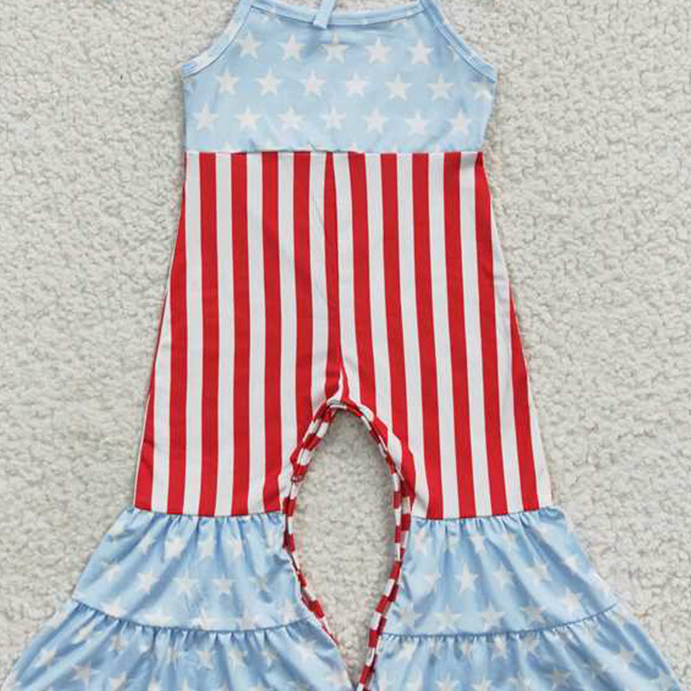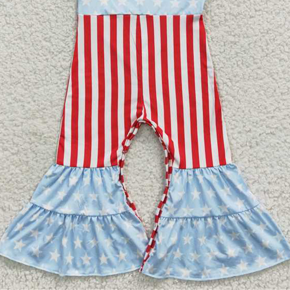 6.09 SR0385 RTS NO MOQ Baby Girls Summer Jumpsuits Sleeveless stripe bell bottom girls 4th of july jumpsuit