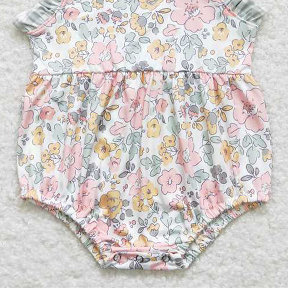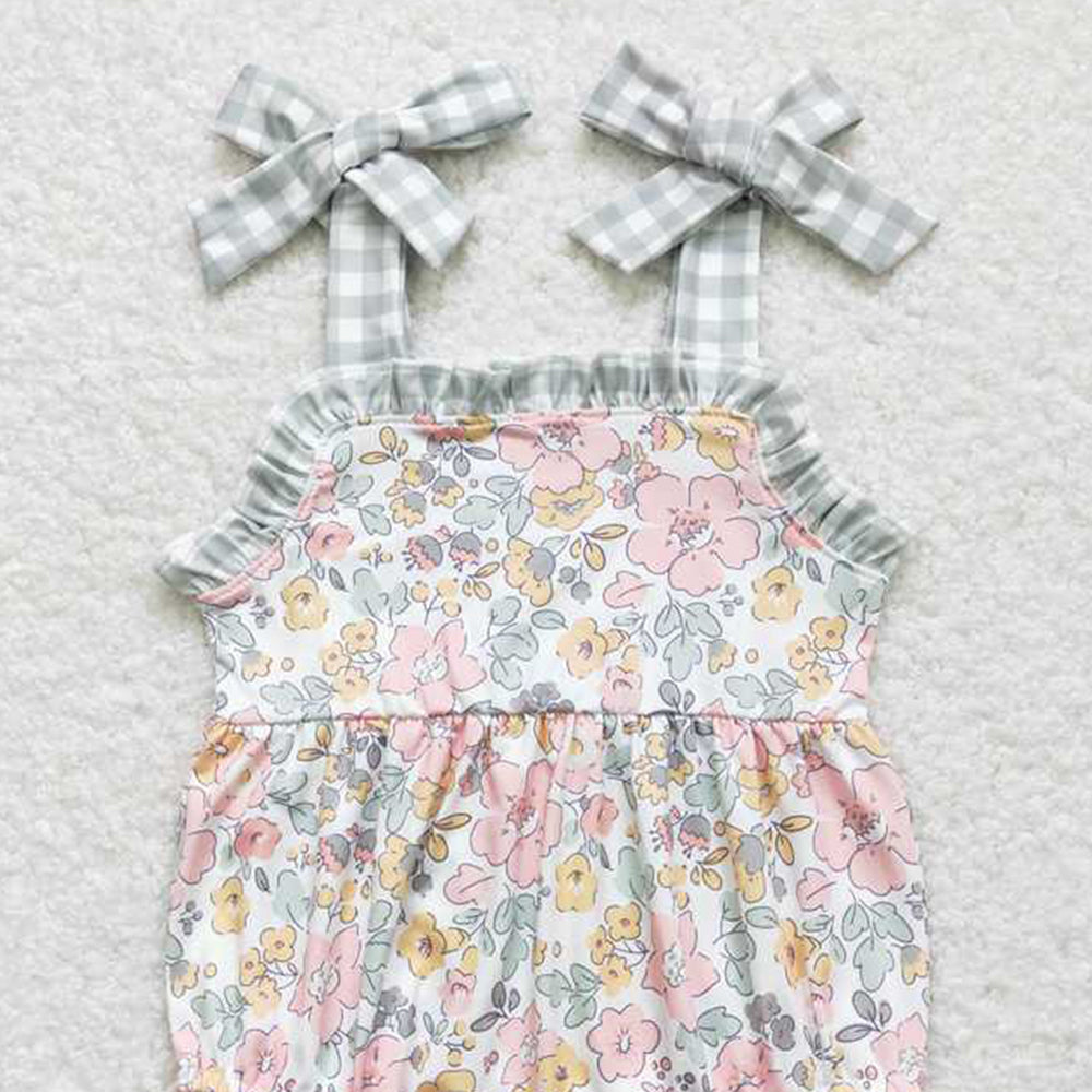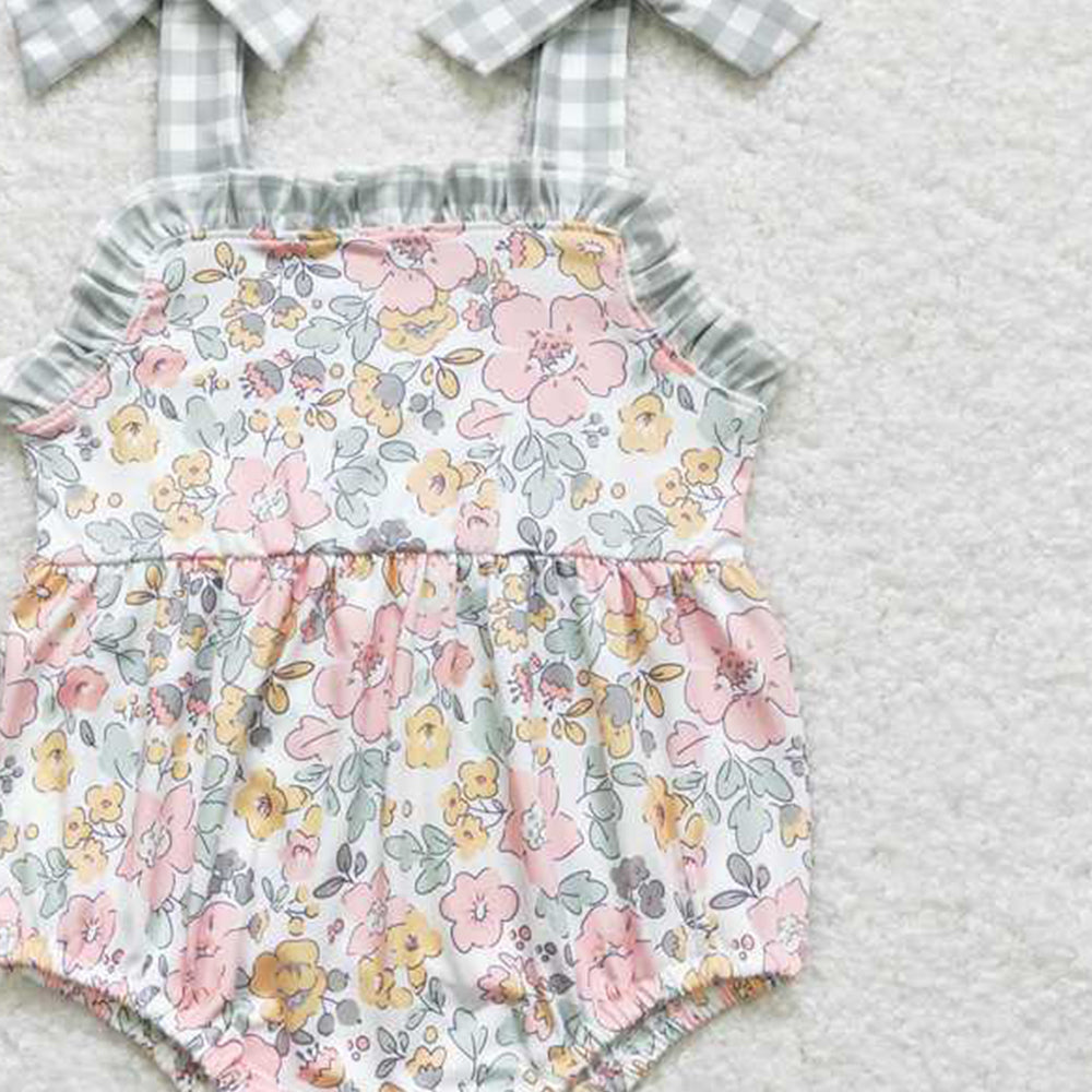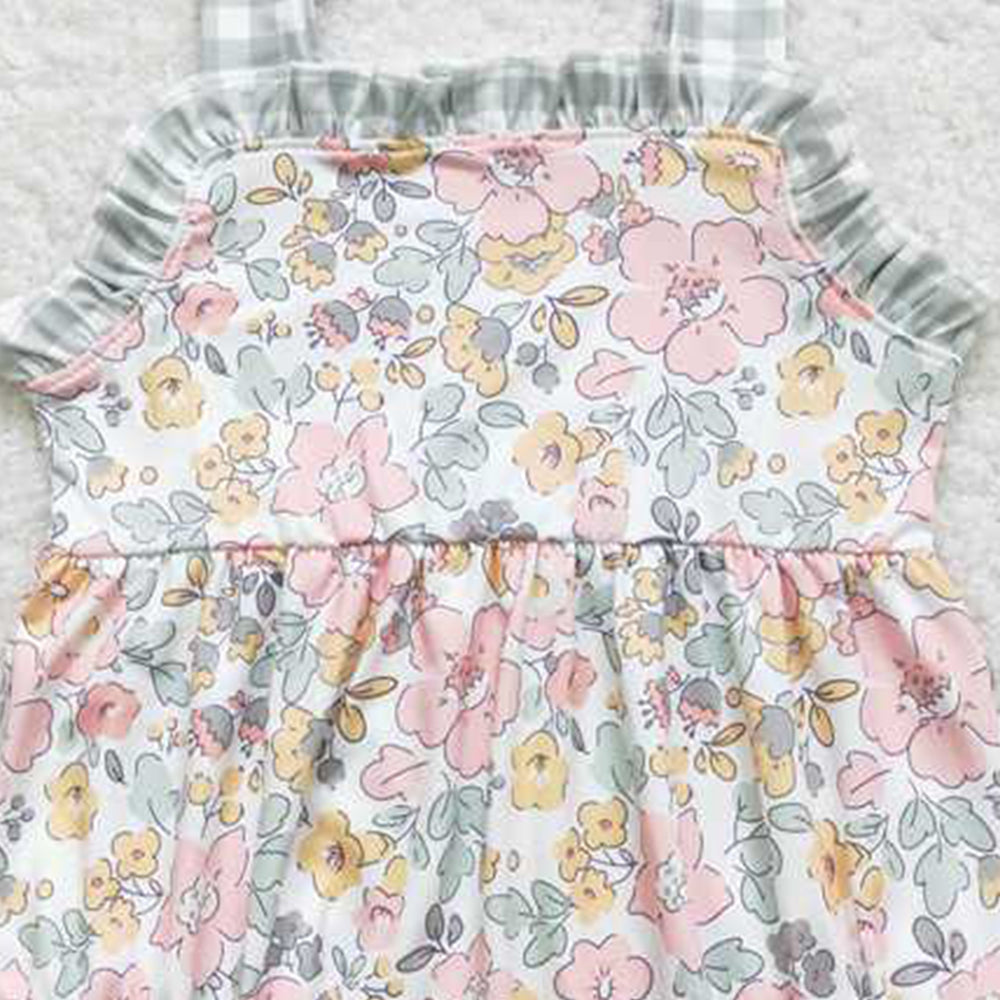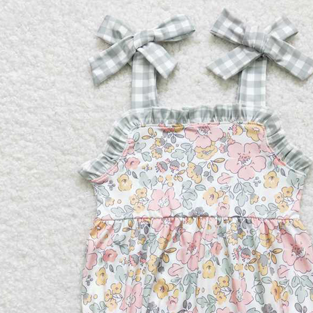 4.30 SR0921 RTS NO MOQ Plaid suspender floral baby girls summer romper
