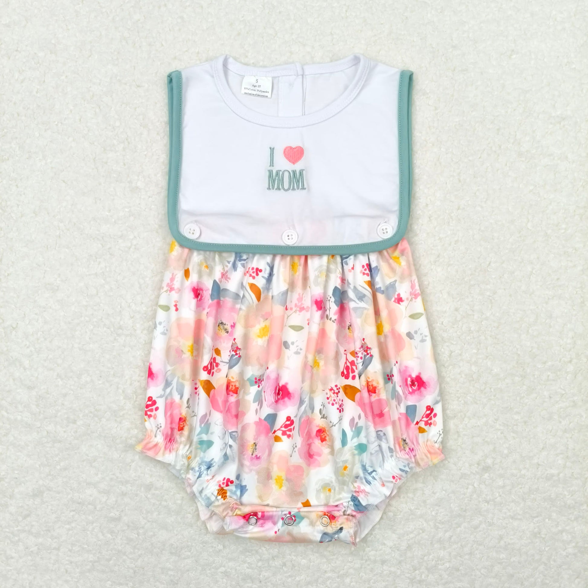 SR0989 Sleeveless I love MOM floral baby girls romper