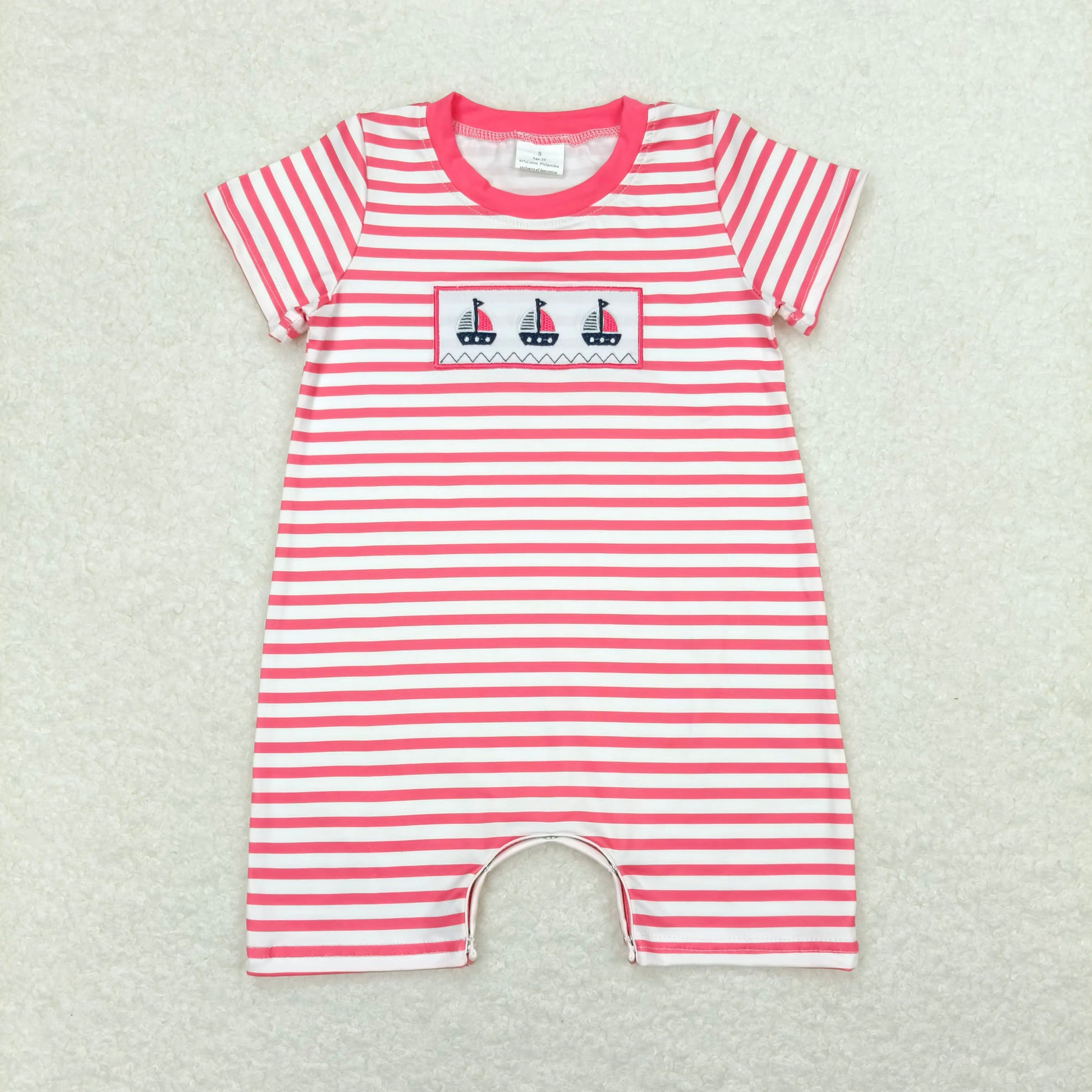SR1028 Baby Infant Boys Boats Stripes Short Sleeve Summer Rompers